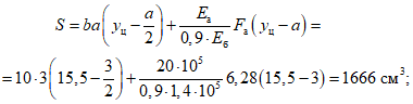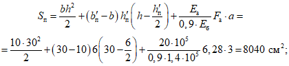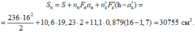 Здесь Sп - статический момент площади полного приведенного сечения относительно оси, проходящей через наиболее растянутое (наименее сжатое) волокно сечения.