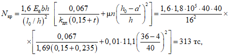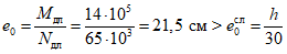 e0 - эксцентрицитет продольной силы N относительно центра тяжести приведенного сечения, определяемый без учета прогиба элемента (начальный эксцентрицитет);