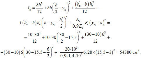 где y0 - расстояние от центра тяжести приведенного сечения до верхней грани сечения y0 = h - yц.