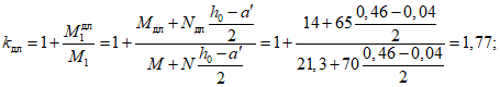 Формулы, в которых коэффициенты при расчете конструкций из плотного силикатного бетона имеют однозначную величину (в том числе величину, равную 1), приведены с заменой буквенных обозначений коэффициентов конкретными их значениями.