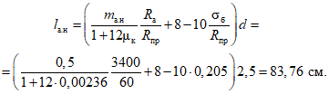 б) для сечений на участках с трещинами в растянутой зоне - по формуле