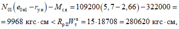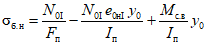 e0н - эксцентрицитет усилия предварительного обжатия N0 относительно центра тяжести приведенного сечения;