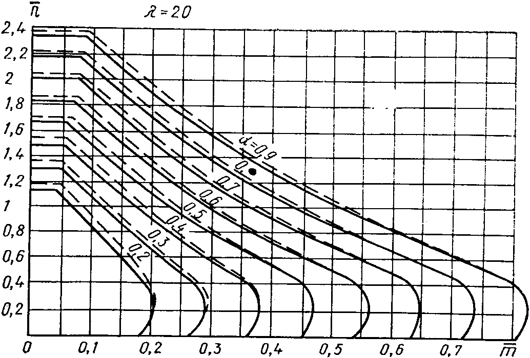 примера 20 от действия полной нагрузки образуются трещины в растянутой зоне, кривизну в середине пролета определяем как для сечения с трещинами по