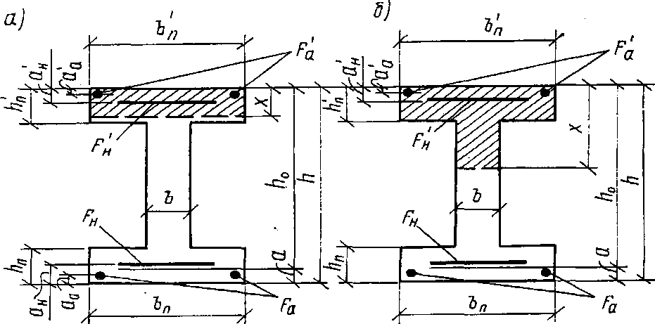 - высота полки таврового и двутаврового сечения соответственно в растянутой и сжатой зоне;