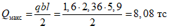Здесь Q(x) - поперечная сила в сечении x от действия внешней нагрузки;