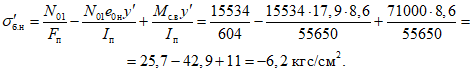 | где  - для бетона пропаренного и естественного твердения определяется на уровне центра тяжести продольной арматуры А и А1 с учетом потерь по поз. 1 - 5 табл. 4 "Руководства по проектированию предварительно напряженных железобетонных конструкций из тяжелого бетона"; k - коэффициент, принимаемый равным: для бетона естественного твердения - 1; для бетона, подвергнутого тепловой обработке при атмосферном давлении - 0,85. |