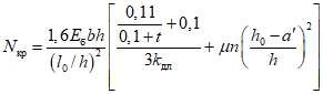Расчет бетонных и железобетонных элементов из бетонов на пористых заполнителях прямоугольного сечения при их расчетной длине