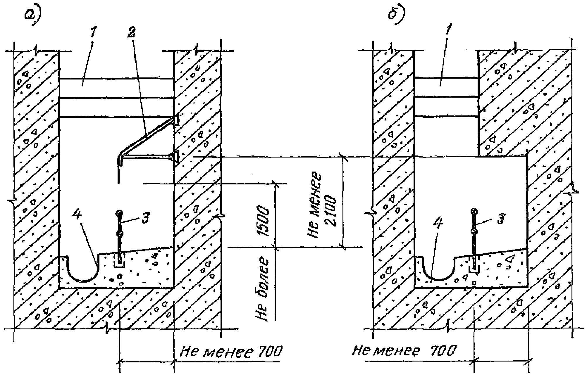 2. Размеры в скобках даны для подвалов с временной нагрузкой на пол цеха до 5·104 Па (5 тс/м2).