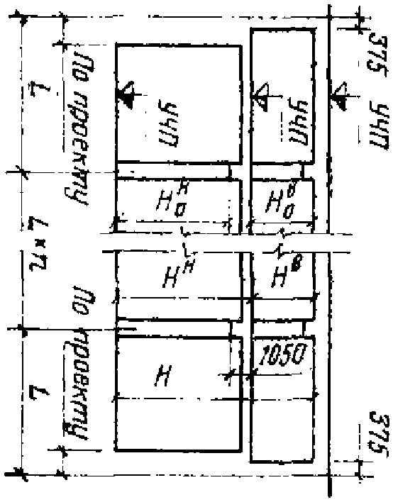 Для удобства работы могут даваться привязки других координационных осей оборудования к координационным осям здания. Эти привязки имеют справочный (проверочный, контрольный) характер и для разбивки осей на площадке служить не могут. Справочные размеры помещаются в одинарной рамке (рис. 3).