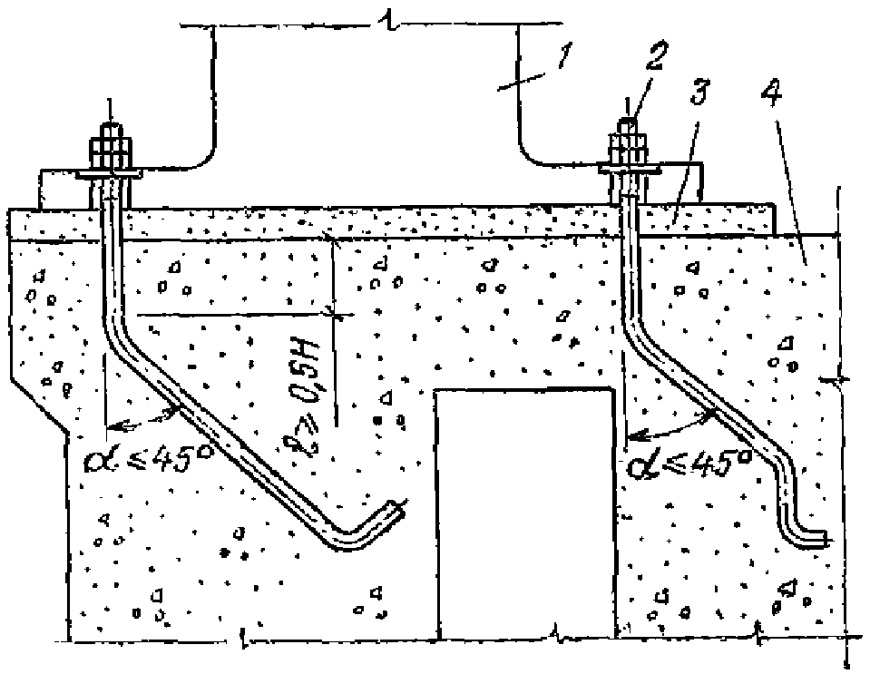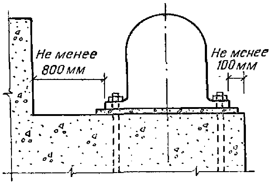 а) на видах (планах) фундаментные болты показывают точками, на разрезах показывают схематично толстой линией, шанцы не показывают, маркировку болтов не дают;