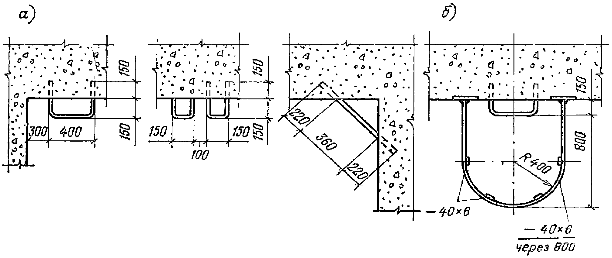 H определяется габаритами прохода с учетом возможной прокладки коммуникаций и конструкцией лотка смыва.