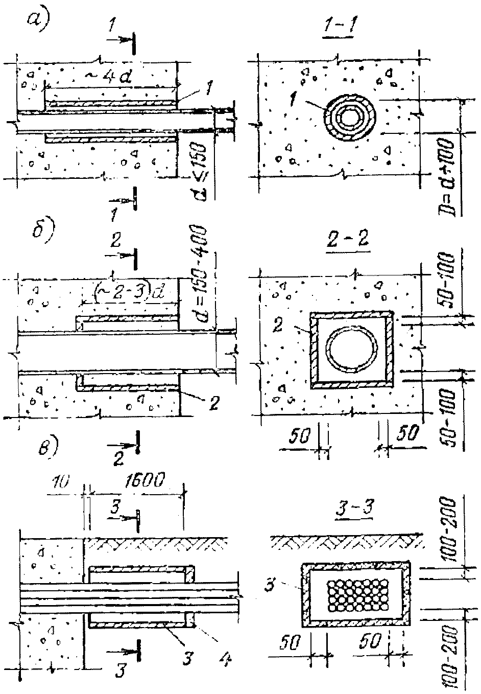 2.18. Внутренние габариты каналов и тоннелей, в том числе и располагаемые в теле фундаментов, следует принимать в соответствии с табл. 3.