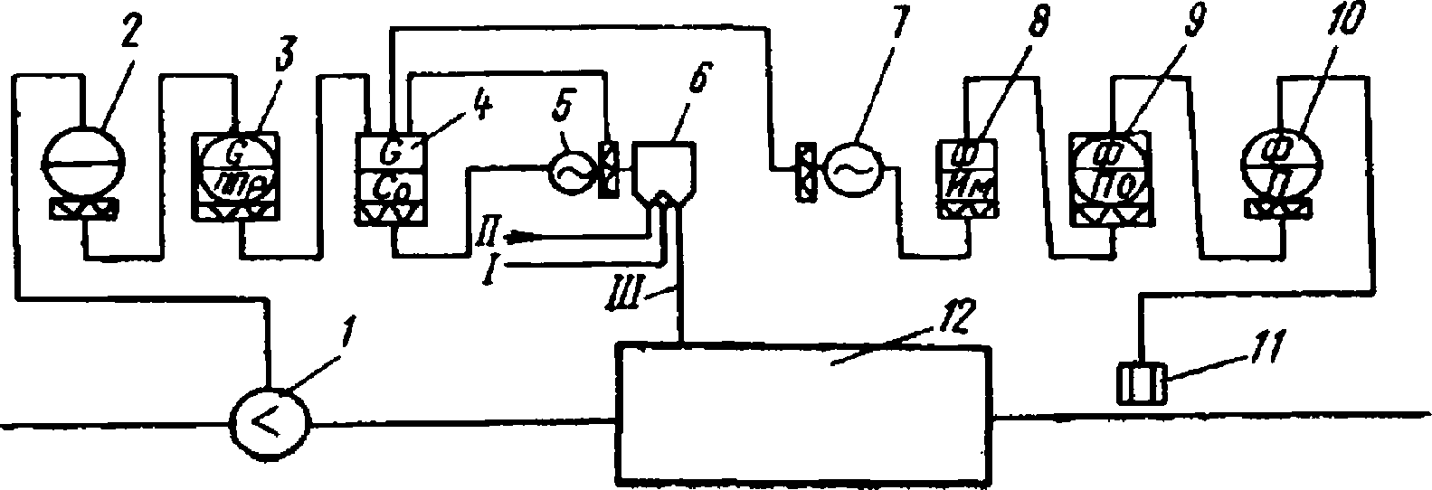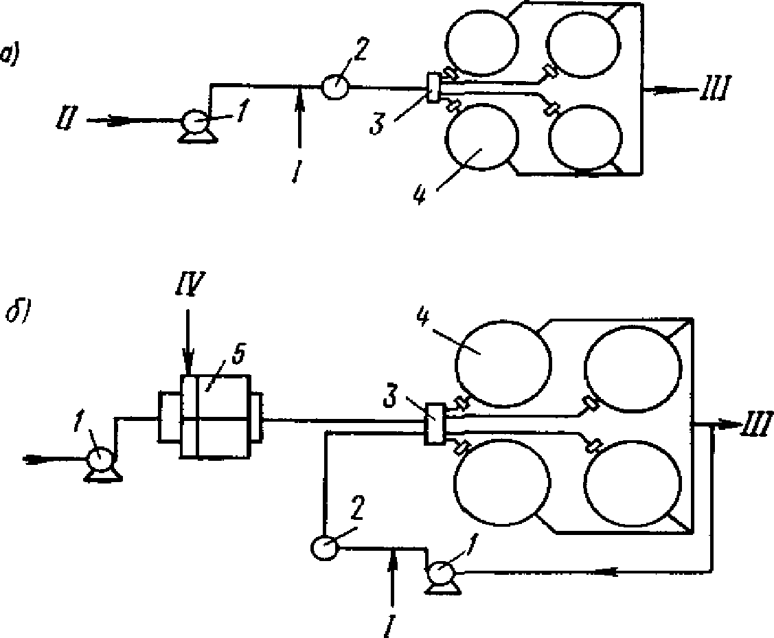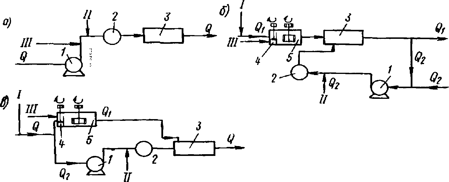 III - подача флокулянта; 1 - насос для подачи жидкости;