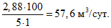 Суточный расход безводного коагулянта составляет 2,88 т.