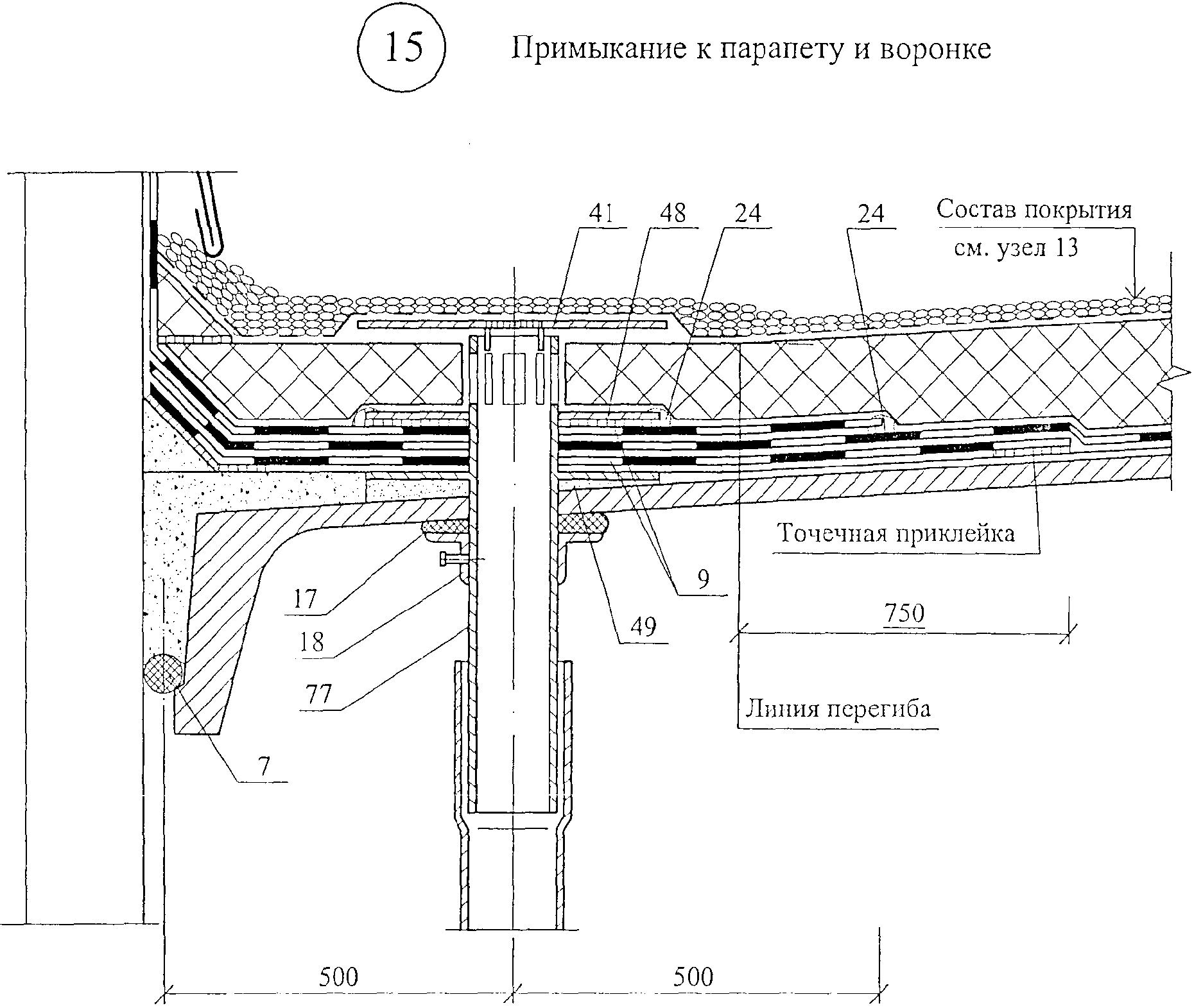 5 - 4 слоя рубероида на мастике (существующая кровля);