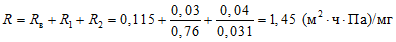 4. Вычисляем сопротивление теплопередаче слоев покрытия от внутренней поверхности до плоскости возможной конденсации: