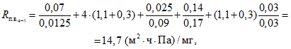 где 0,11 мг/(м2·ч·Па) - коэффициент паропроницаемости кирпичной кладки.