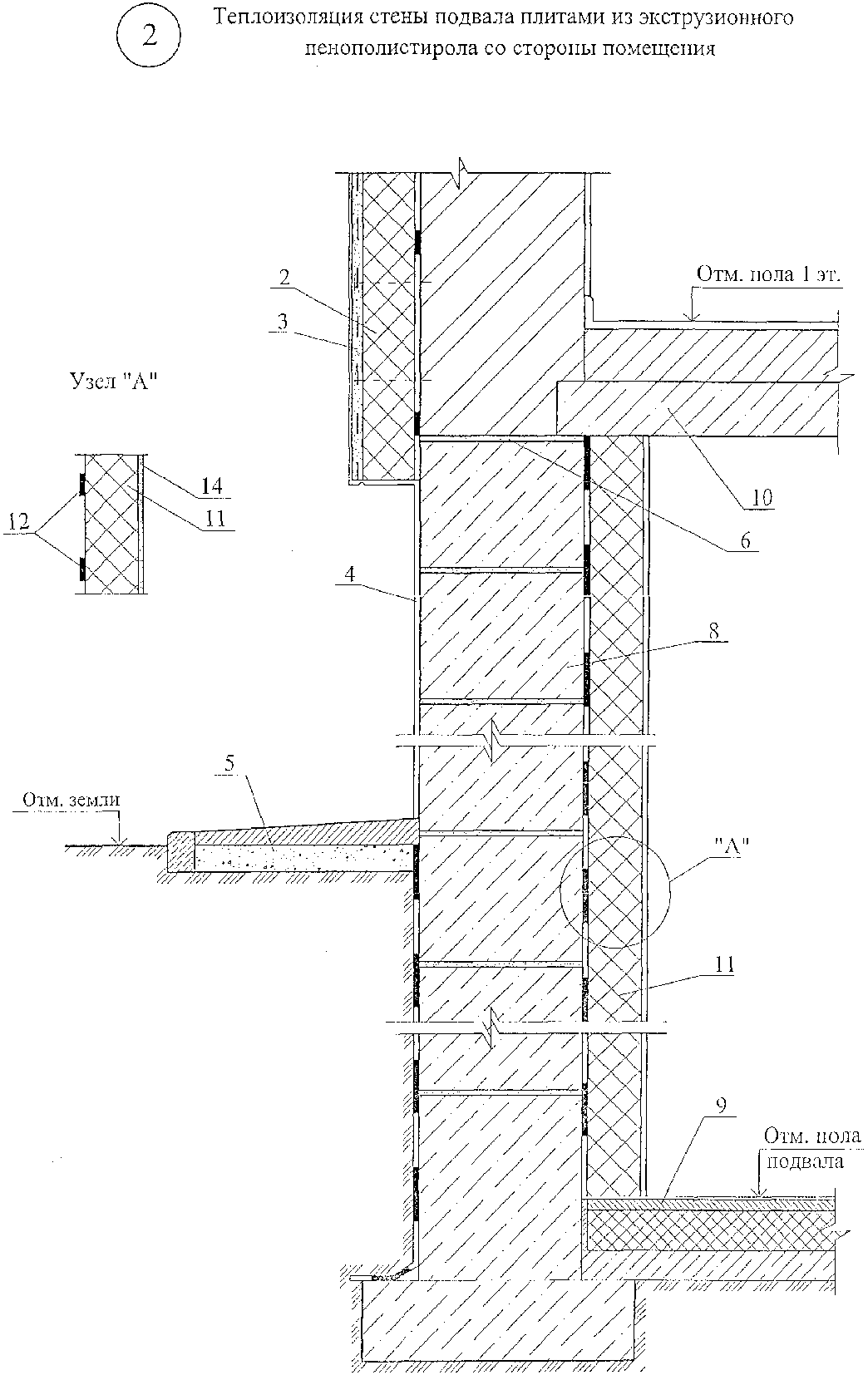 1 - стена подвала; 2 - теплоизоляция; 3 - облицовка;