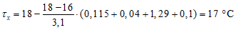 - расчетная температура внутреннего воздуха в помещении 1-го этажа, °C;