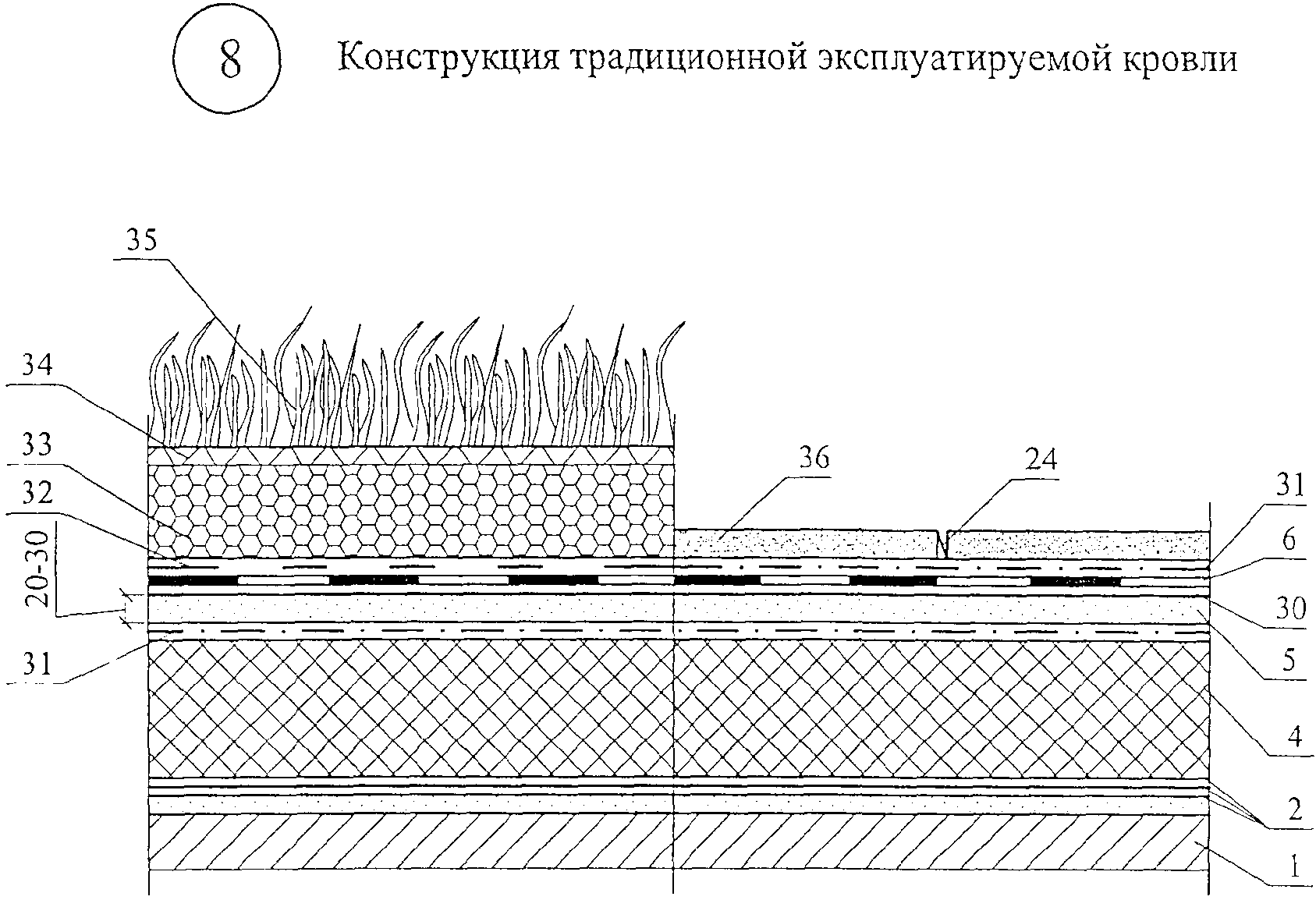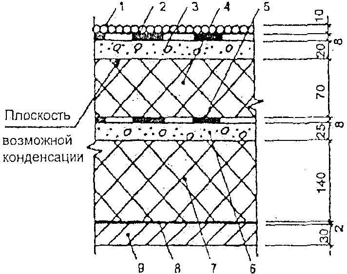 8 - пароизоляция из слоя рубероида на битумной мастике;