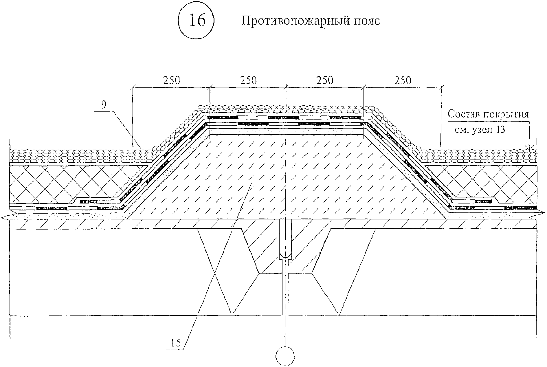 1 - гравий на мастике; 2 - 4 слоя рубероида на битумной