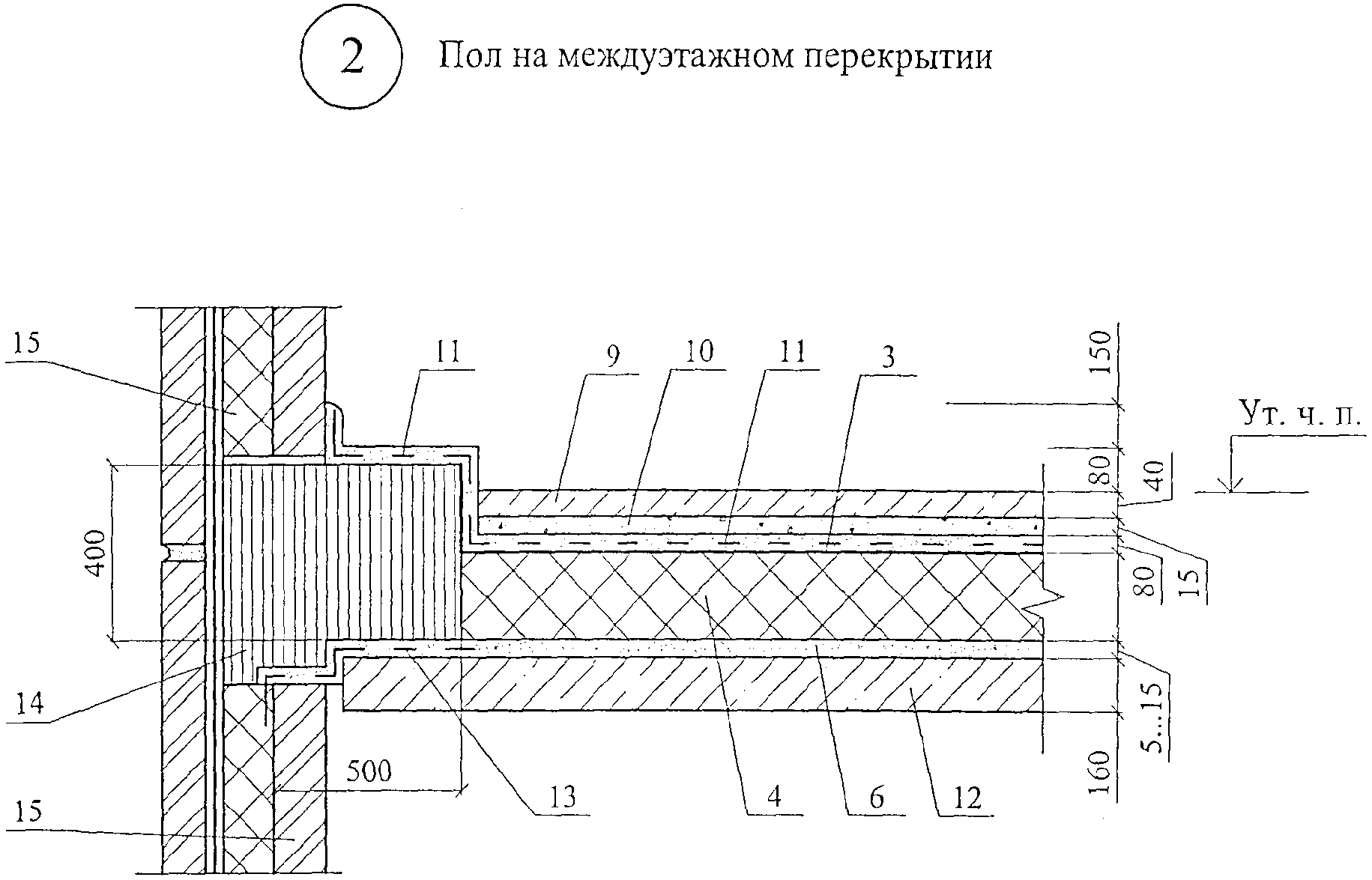мастике; 3 - стяжка из цементно-песчаного раствора;