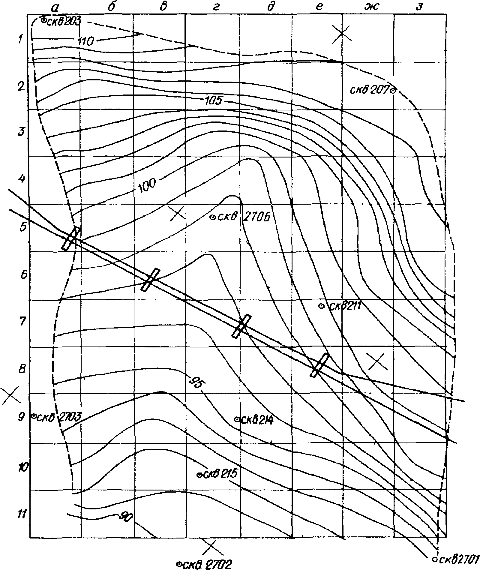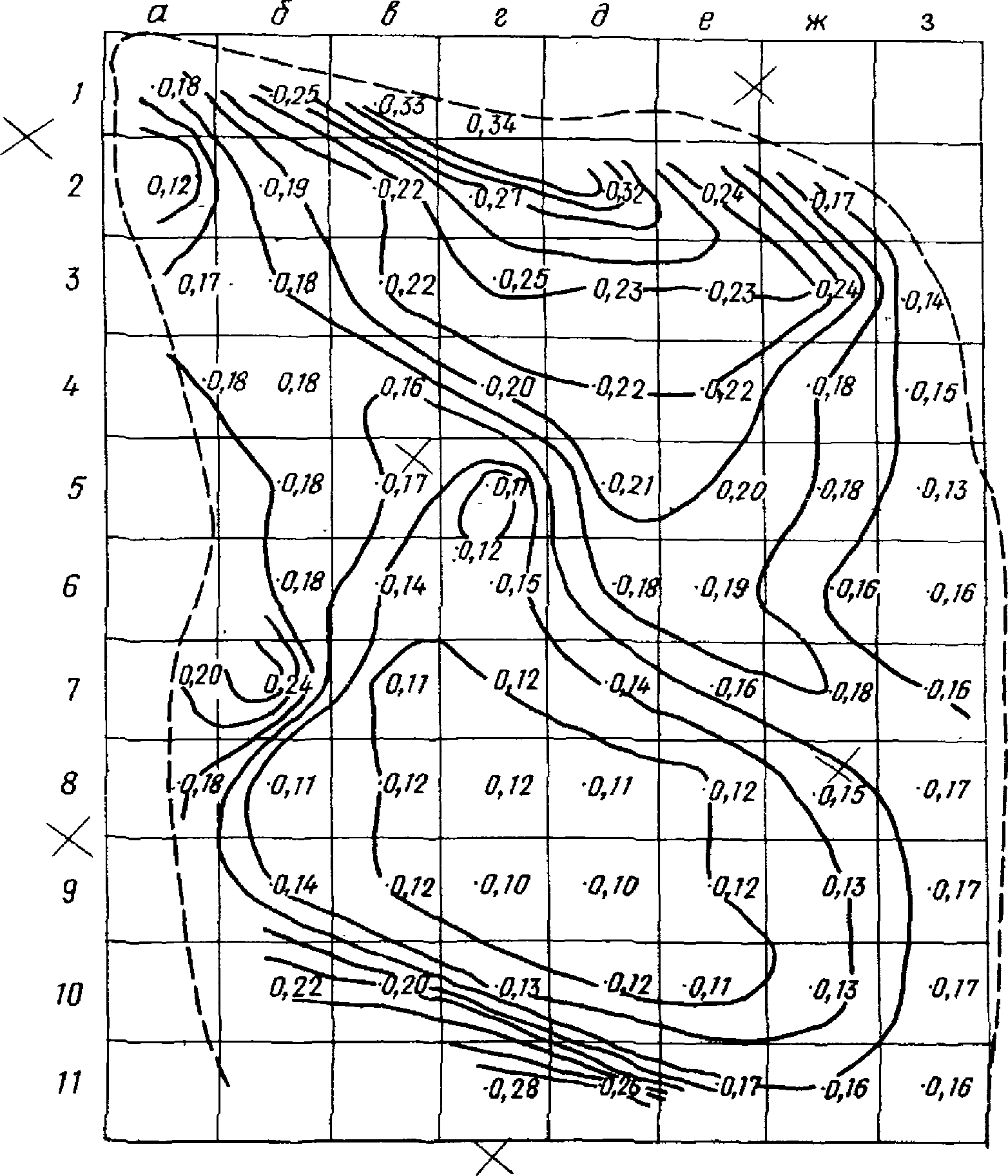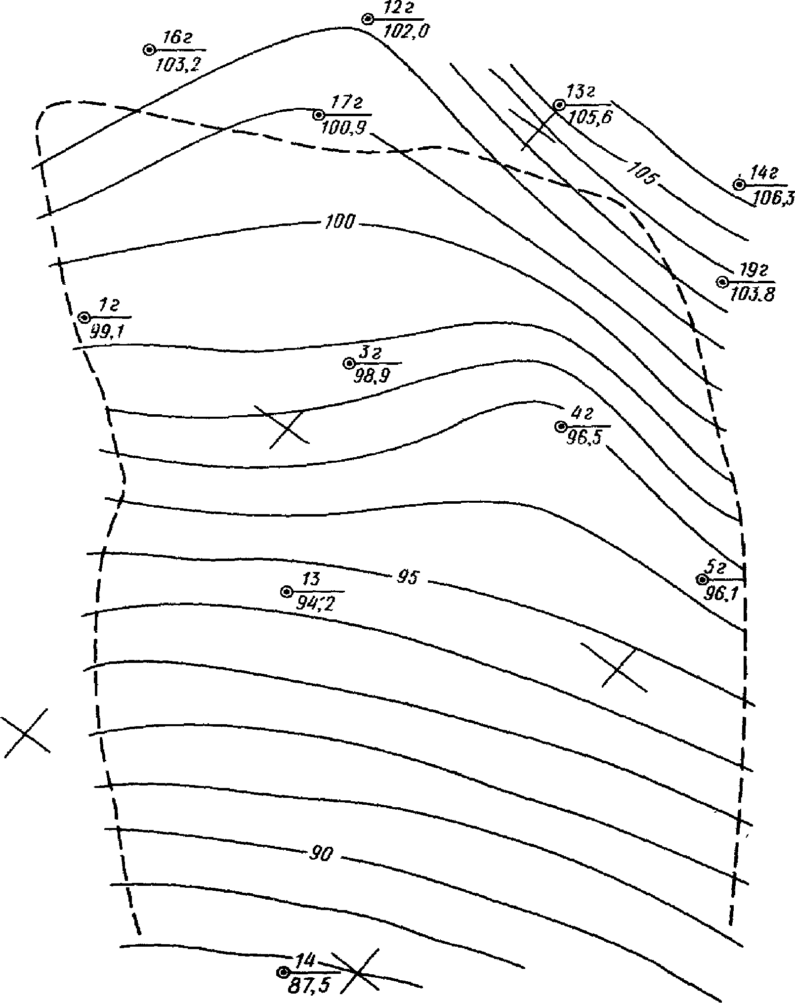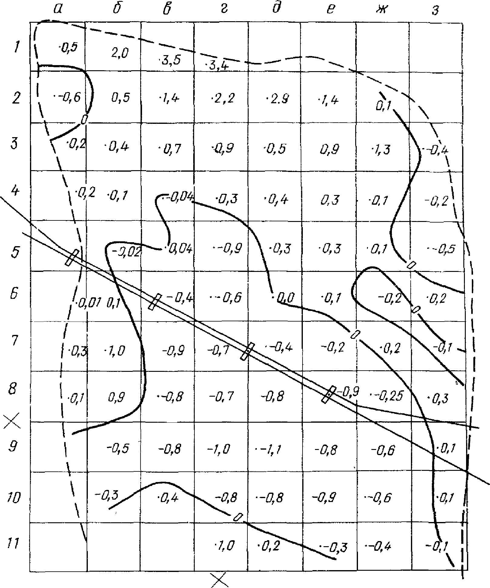 1.11. Наиболее реальная величина оползневого давления на каждый элемент заглубленного сооружения может быть получена по плану изолинейного поля оползневого давления, построенного на основе решения объемной задачи (см.