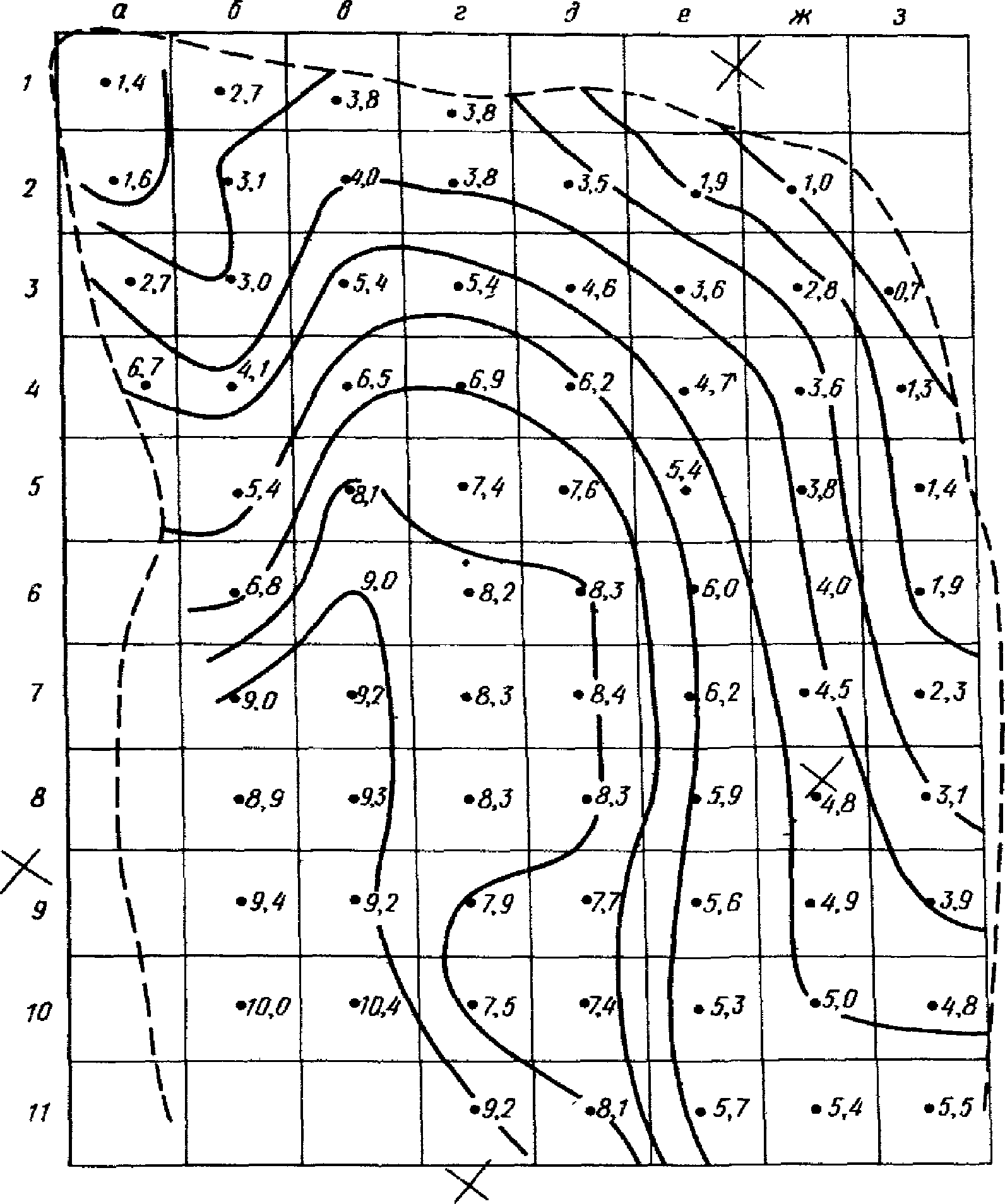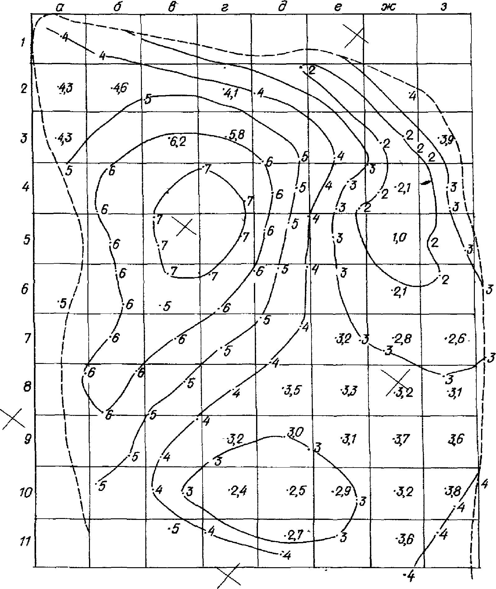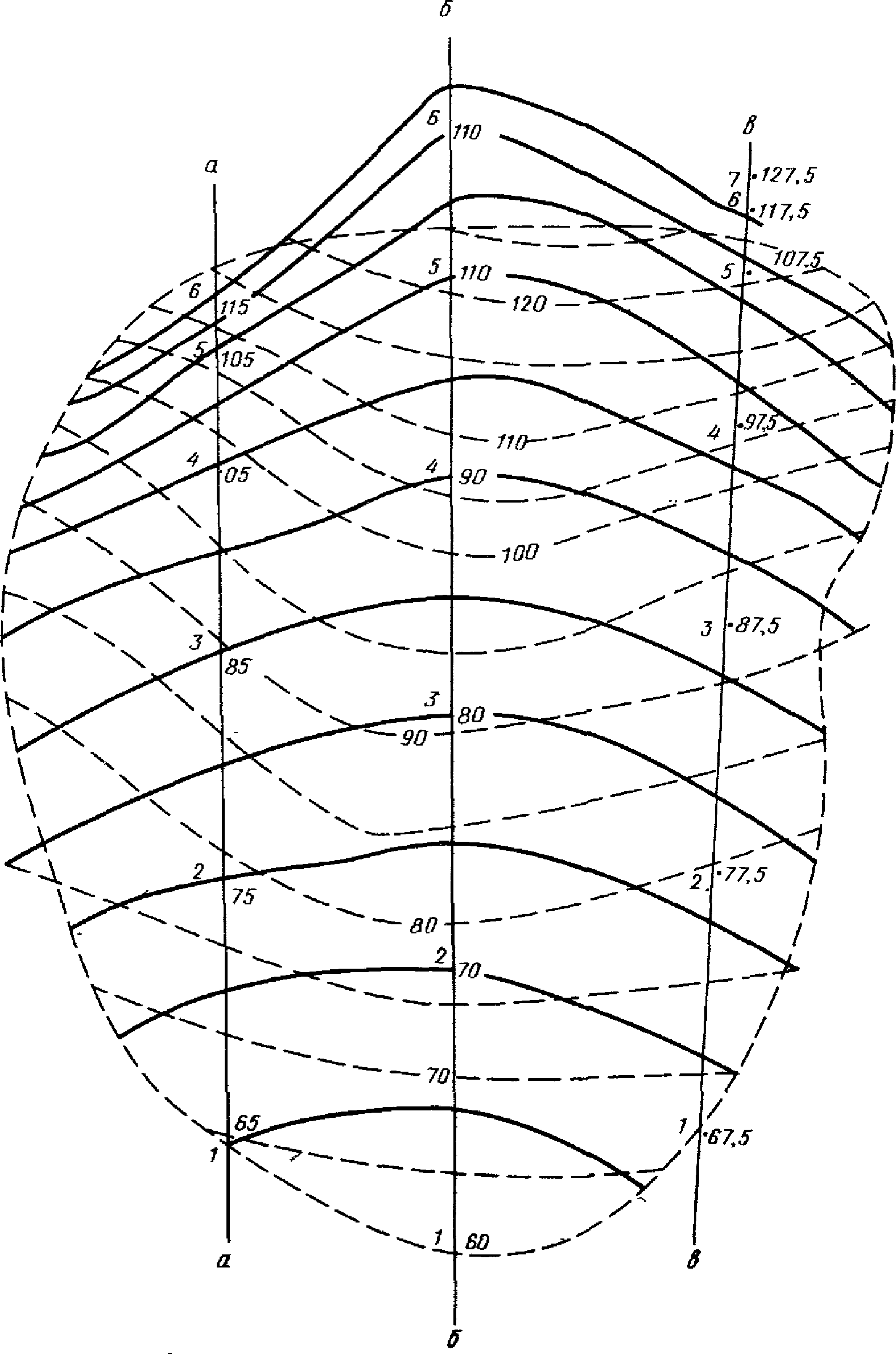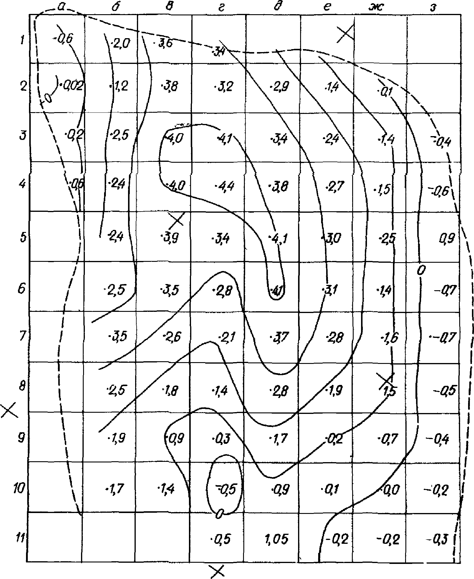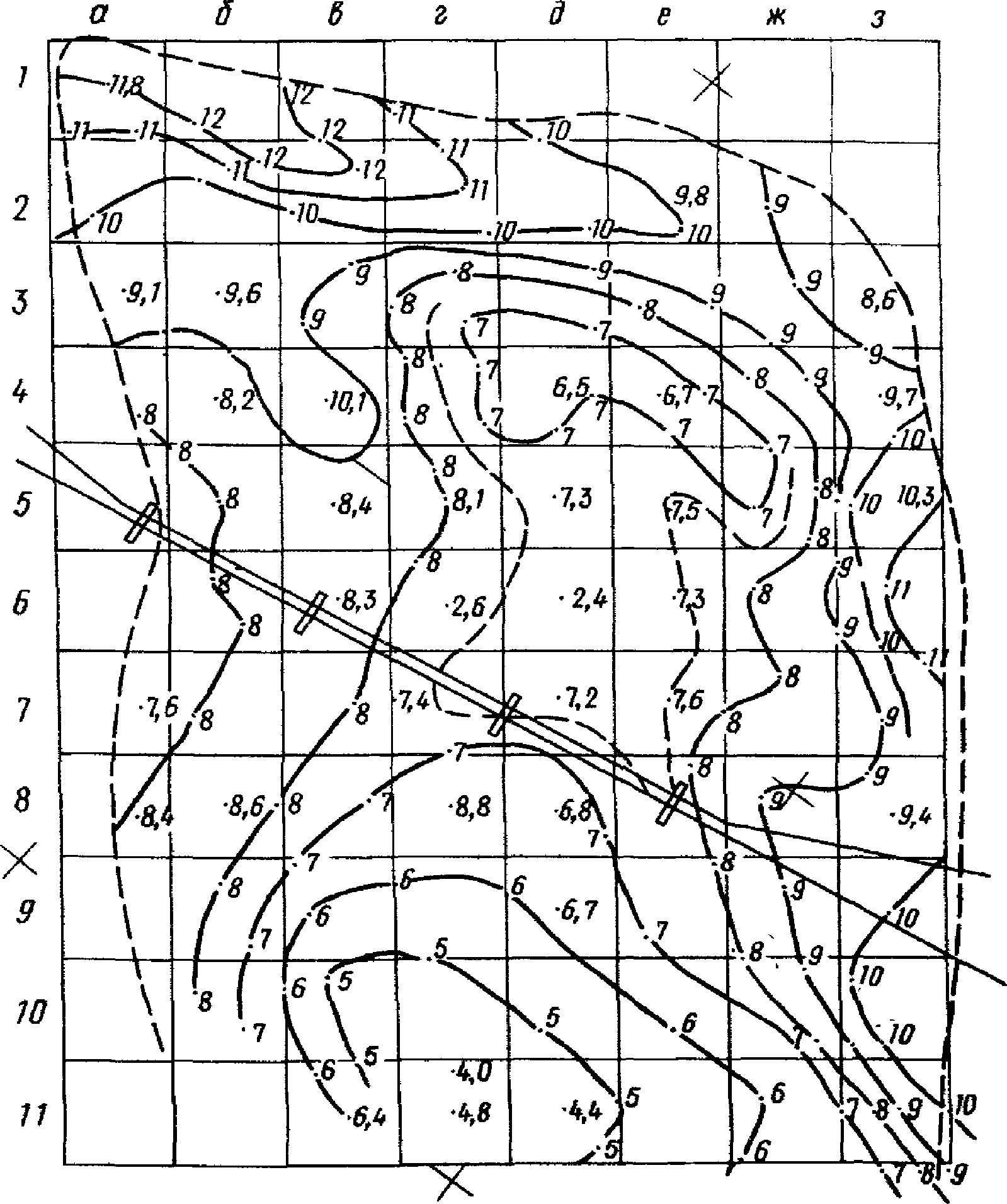 1.11. Наиболее реальная величина оползневого давления на каждый элемент заглубленного сооружения может быть получена по плану изолинейного поля оползневого давления, построенного на основе решения объемной задачи (см.