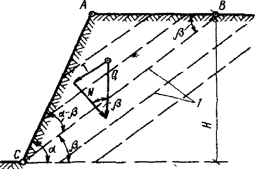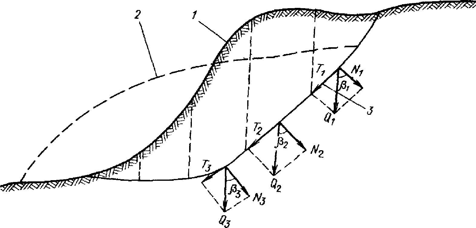 1.12. Оценку устойчивости оползневых склонов и искусственных откосов следует производить исходя из наиболее неблагоприятных условий, возможных для данного участка, с учетом возможных сил фильтрационного давления напорных вод, сейсмических сил землетрясения и длительной прочности вязких грунтов.
