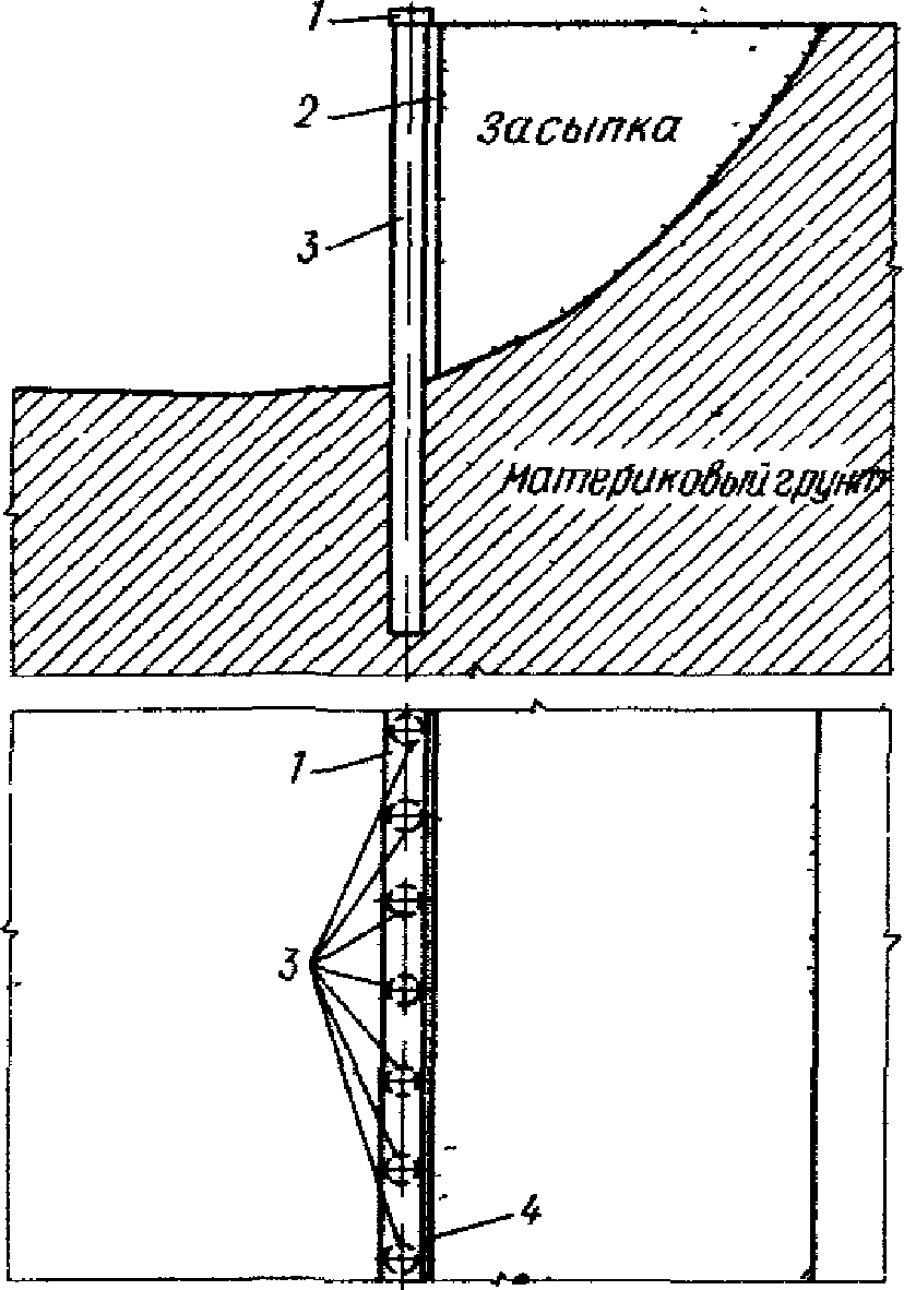2 - сваи; 3 - засыпка; 4 - ростверк