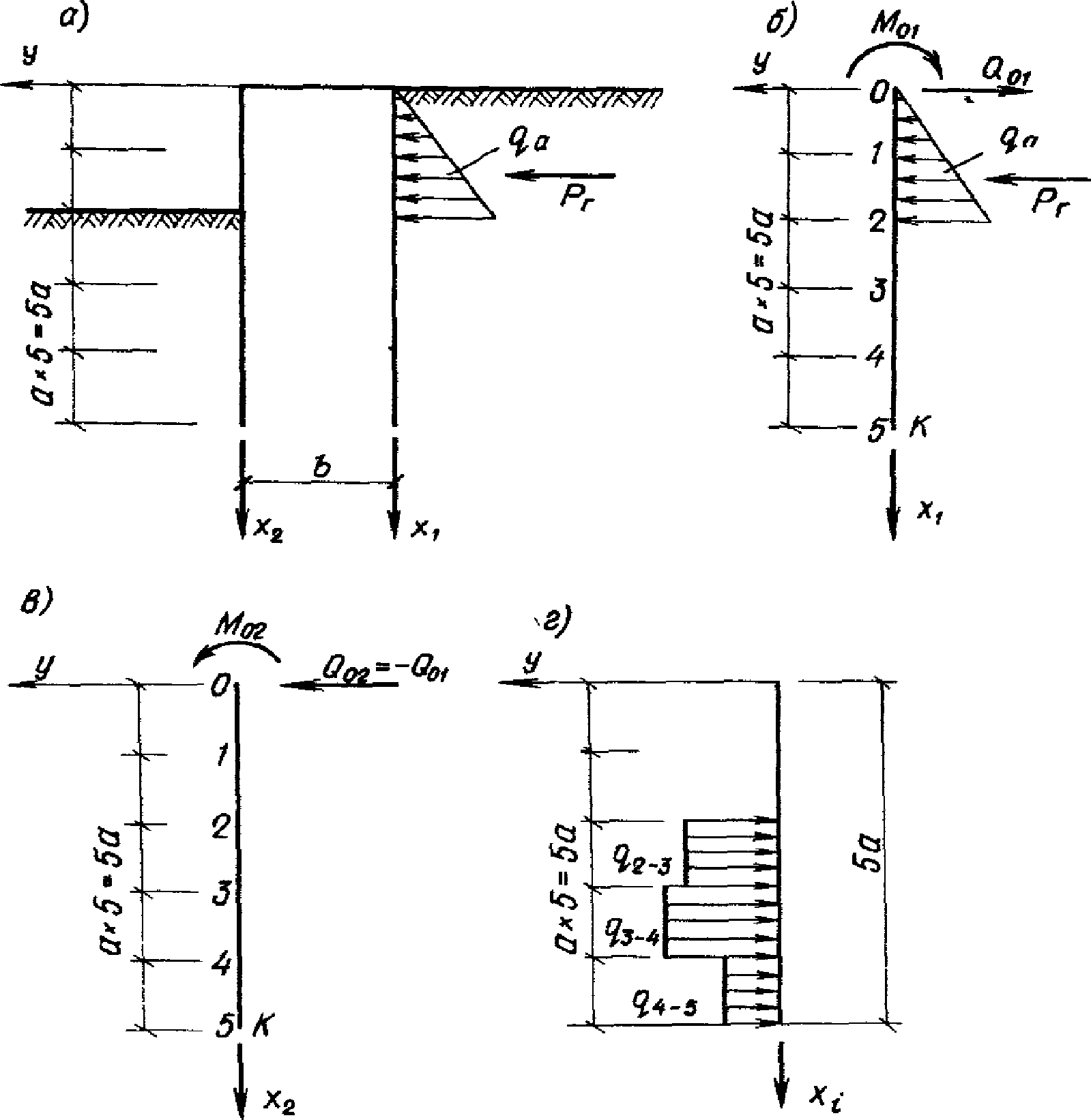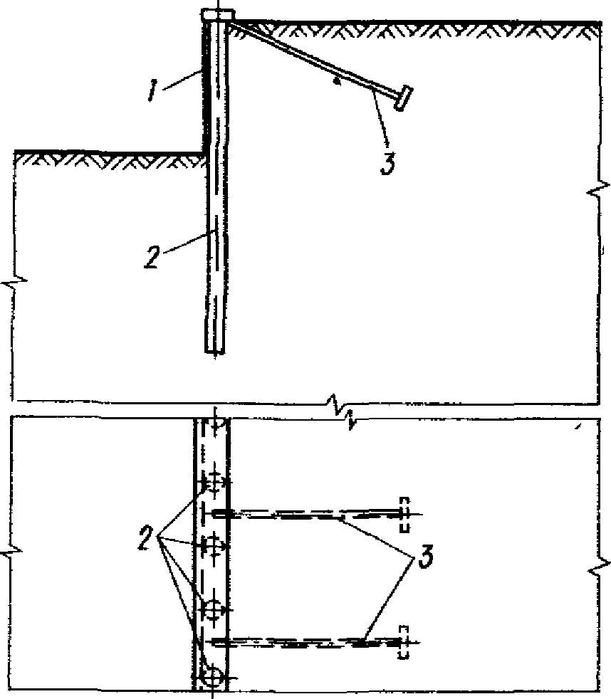 а) однорядными - при сравнительно небольших величинах давления грунта на сооружение;