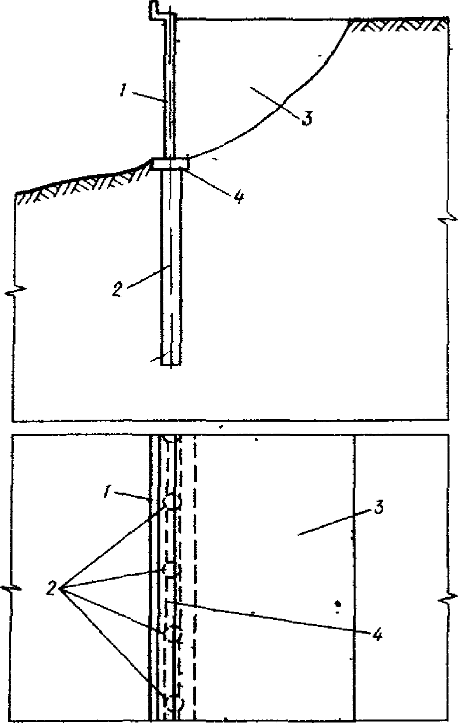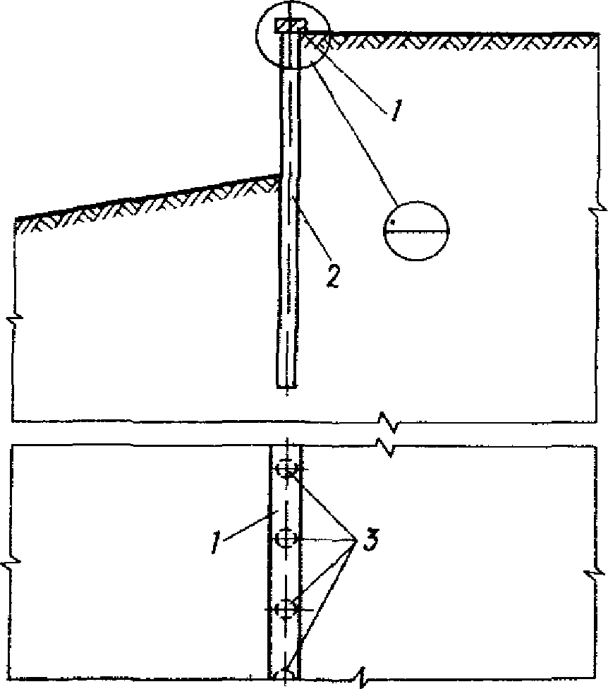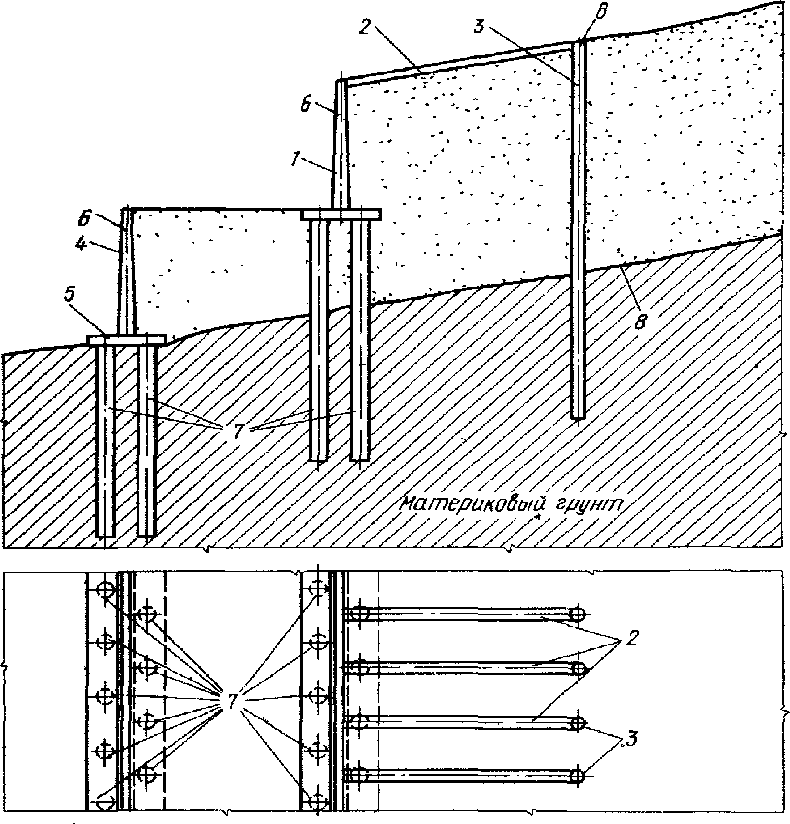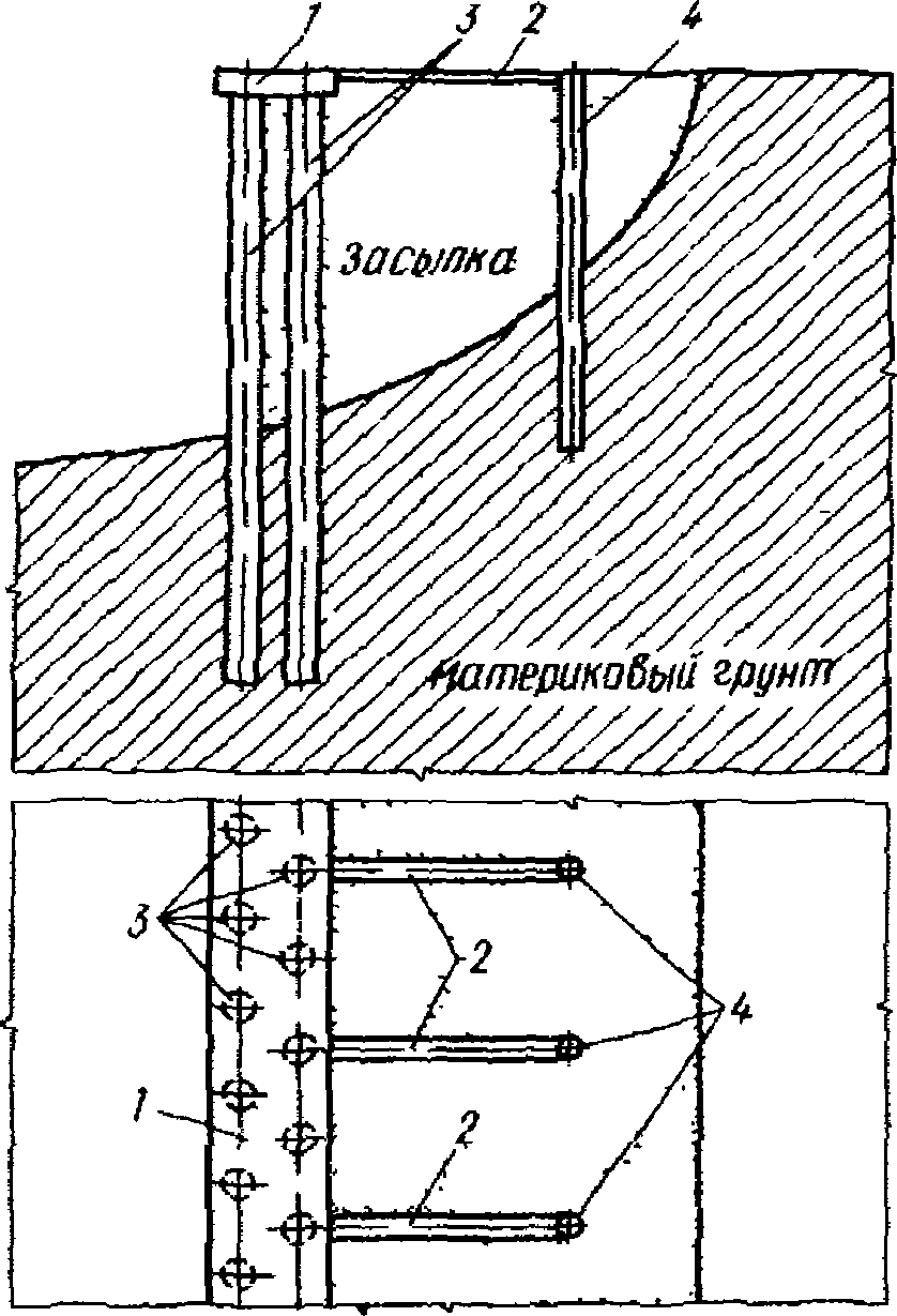 1 - железобетонная забирка; 2 - сваи; 3 - анкер
