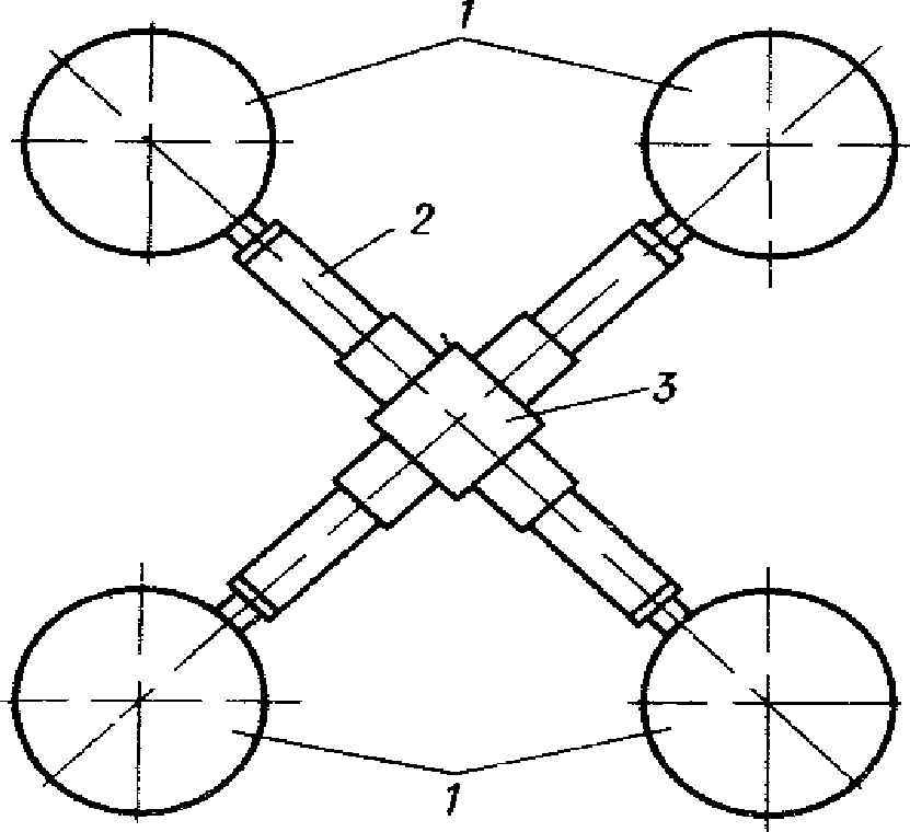 1 - испытываемые сваи; 2 - гидродомкрат; 3 - опорный узел
