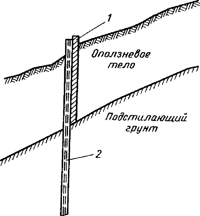 1.3. К удерживающим противооползневым сооружениям из буронабивных свай относятся: сооружения, воспринимающие оползневое давление смещающих или способных сместиться грунтовых масс и обеспечивающие устойчивость всего оползневого массива или его части, расположенные выше удерживающего сооружения; сооружения, работающие в условиях обтекания их грунтом (отдельные глубокие опоры).