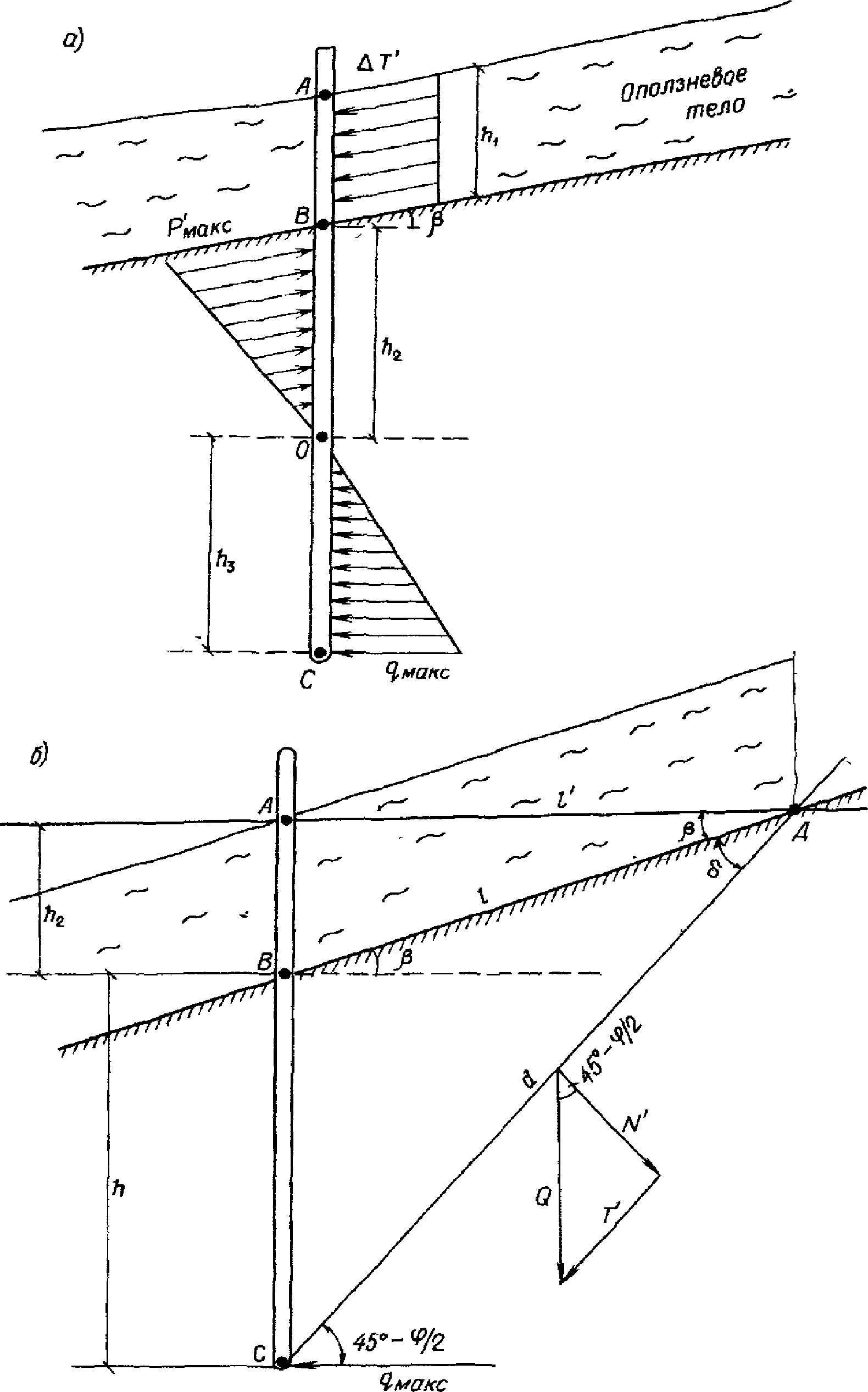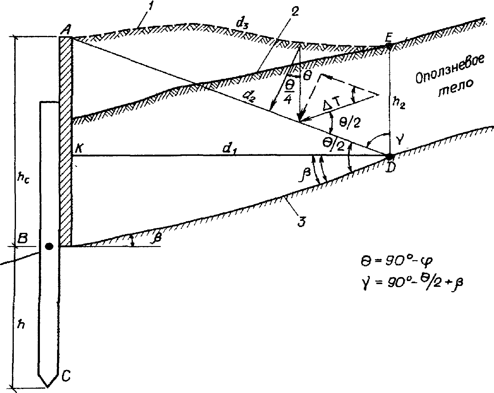 1.10. Расчет устойчивости удерживающих противооползневых сооружений следует производить на воздействие действительного оползневого давления, действующего на его отдельные части или в целом на сооружение.