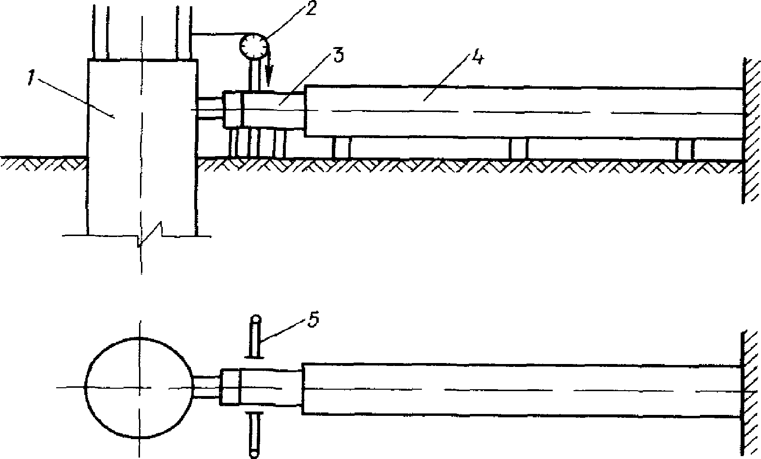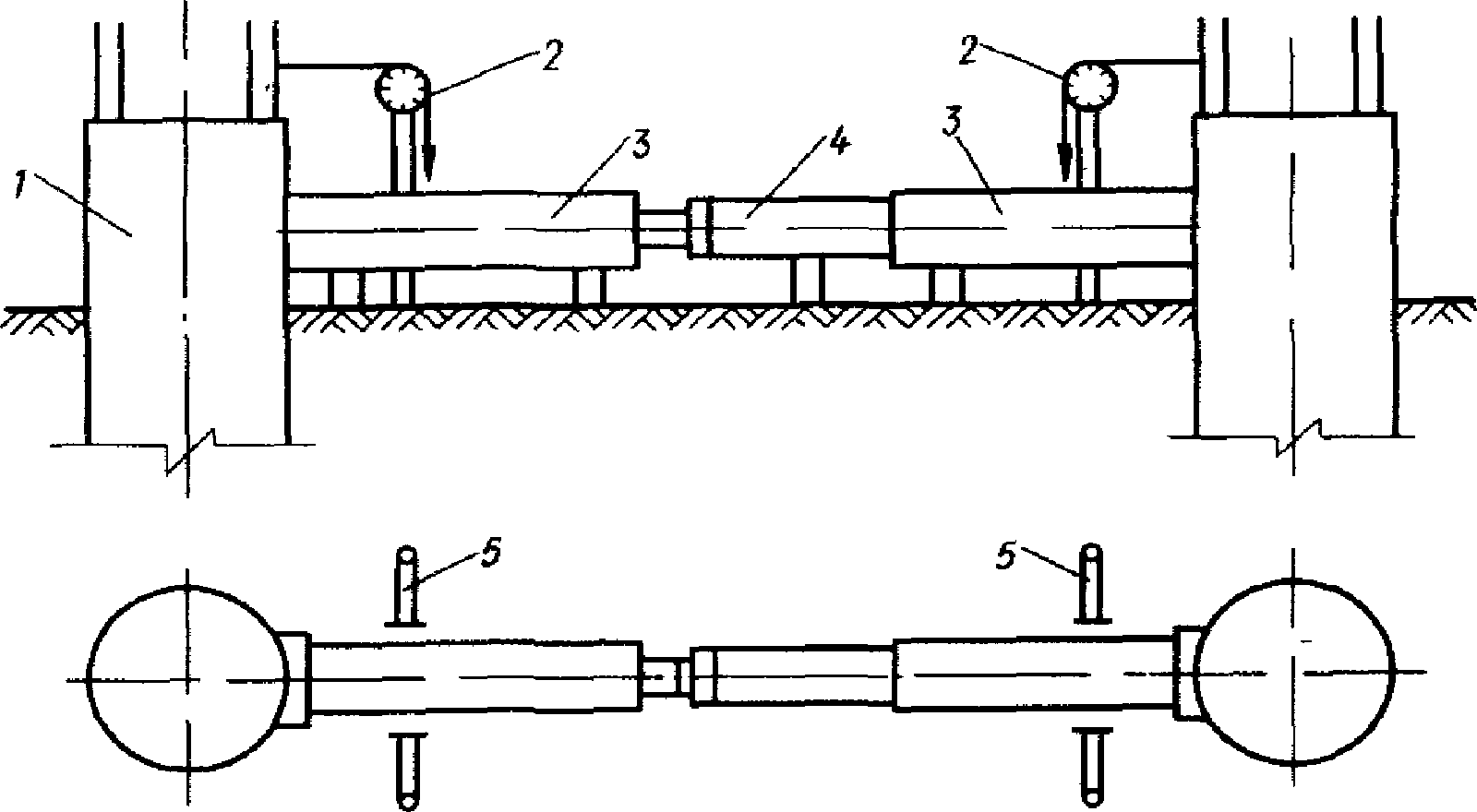 4 - гидродомкрат; 5 - балки для крепления прогибомеров
