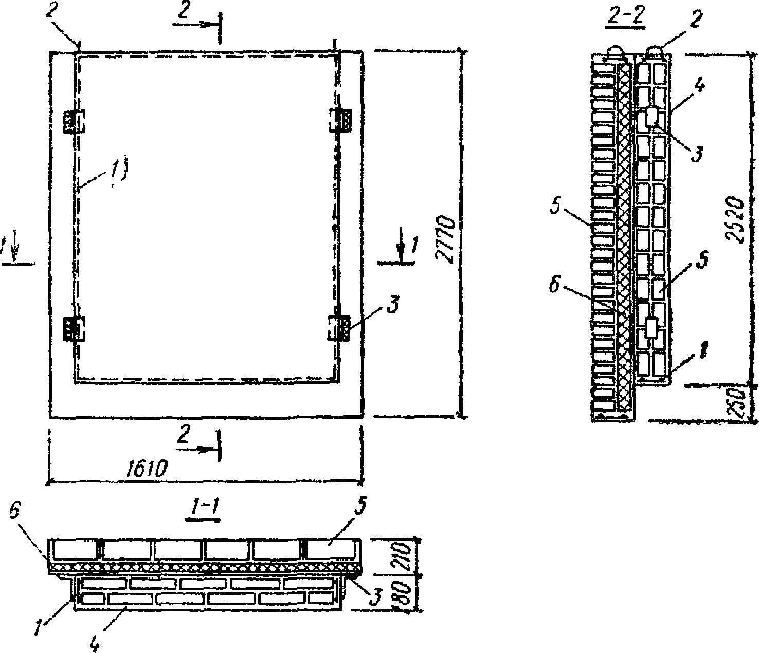 1.5. Кирпичные и керамические панели изготавливают с закладными деталями, арматурными выпусками, углублениями для образования шпонок и монтажными петлями.