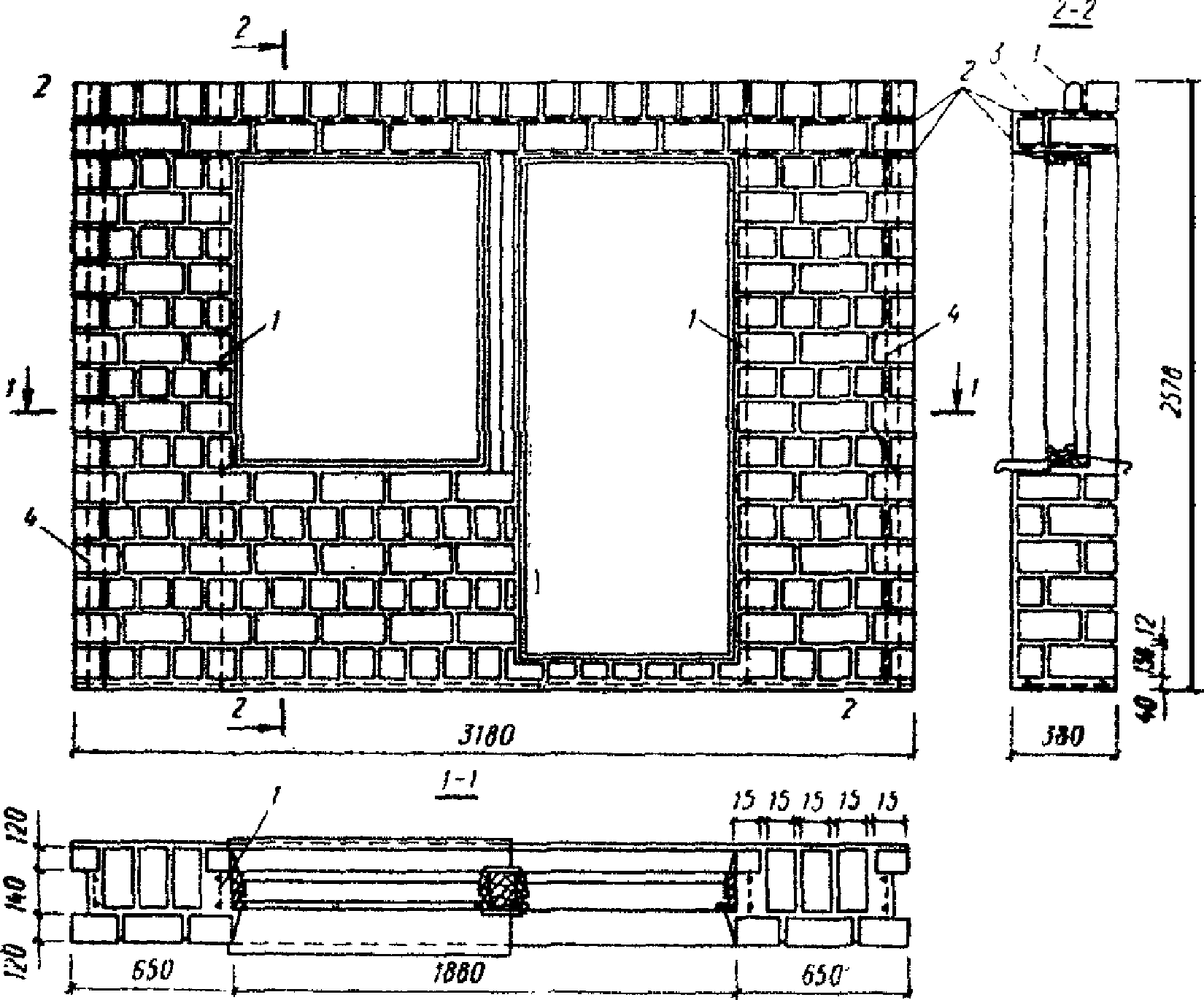или 2 камня и армированы конструктивной арматурой. Заполнение растворных швов может быть выполнено с применением вибрации или без нее.