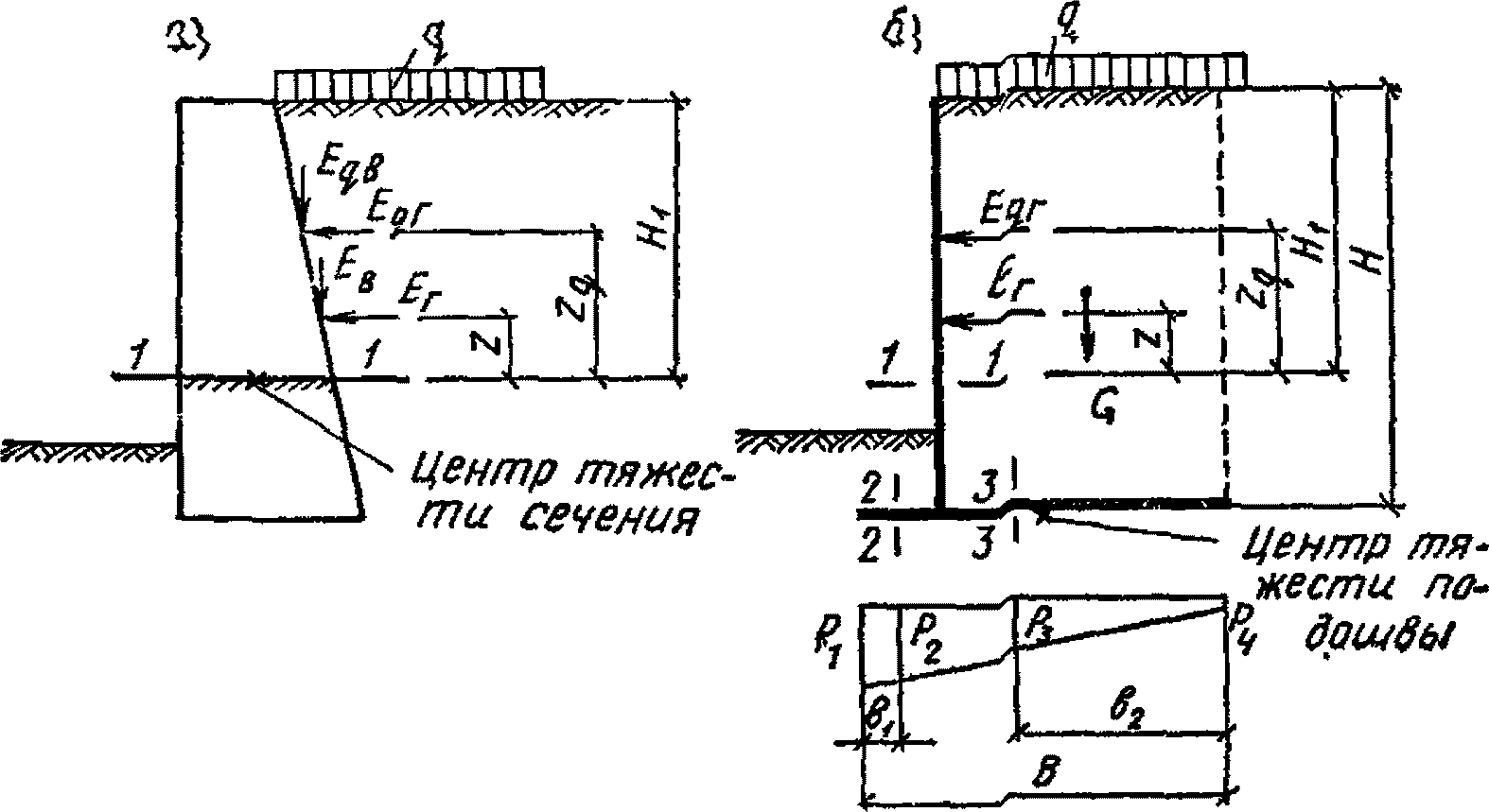 1.6. При проектировании подпорных стен и стен подвалов должны приниматься конструктивные схемы, обеспечивающие необходимую прочность, устойчивость и пространственную неизменяемость сооружения в целом, а также отдельных элементов его на всех стадиях возведения и эксплуатации.