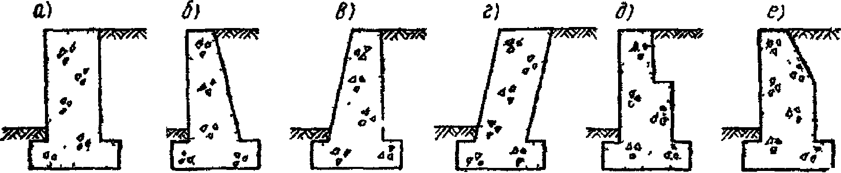 Стены со ступенчатой тыльной гранью применяют главным образом при возведении массивных стен из сборных бетонных блоков.