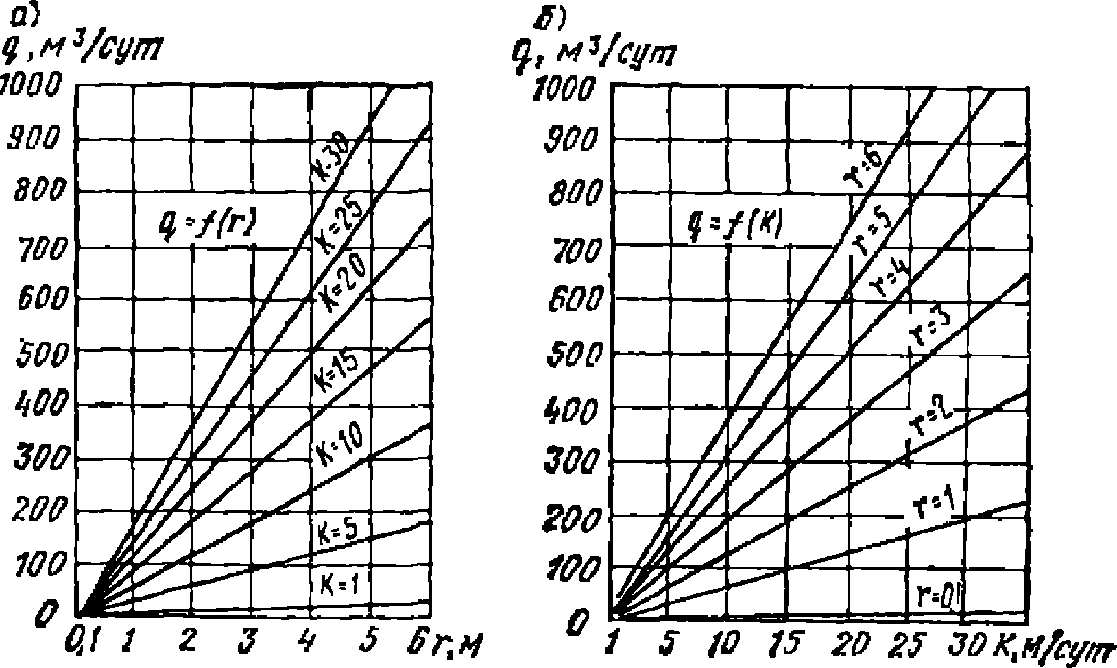 м); dф, l - диаметр и длина фильтра; h, r - глубина