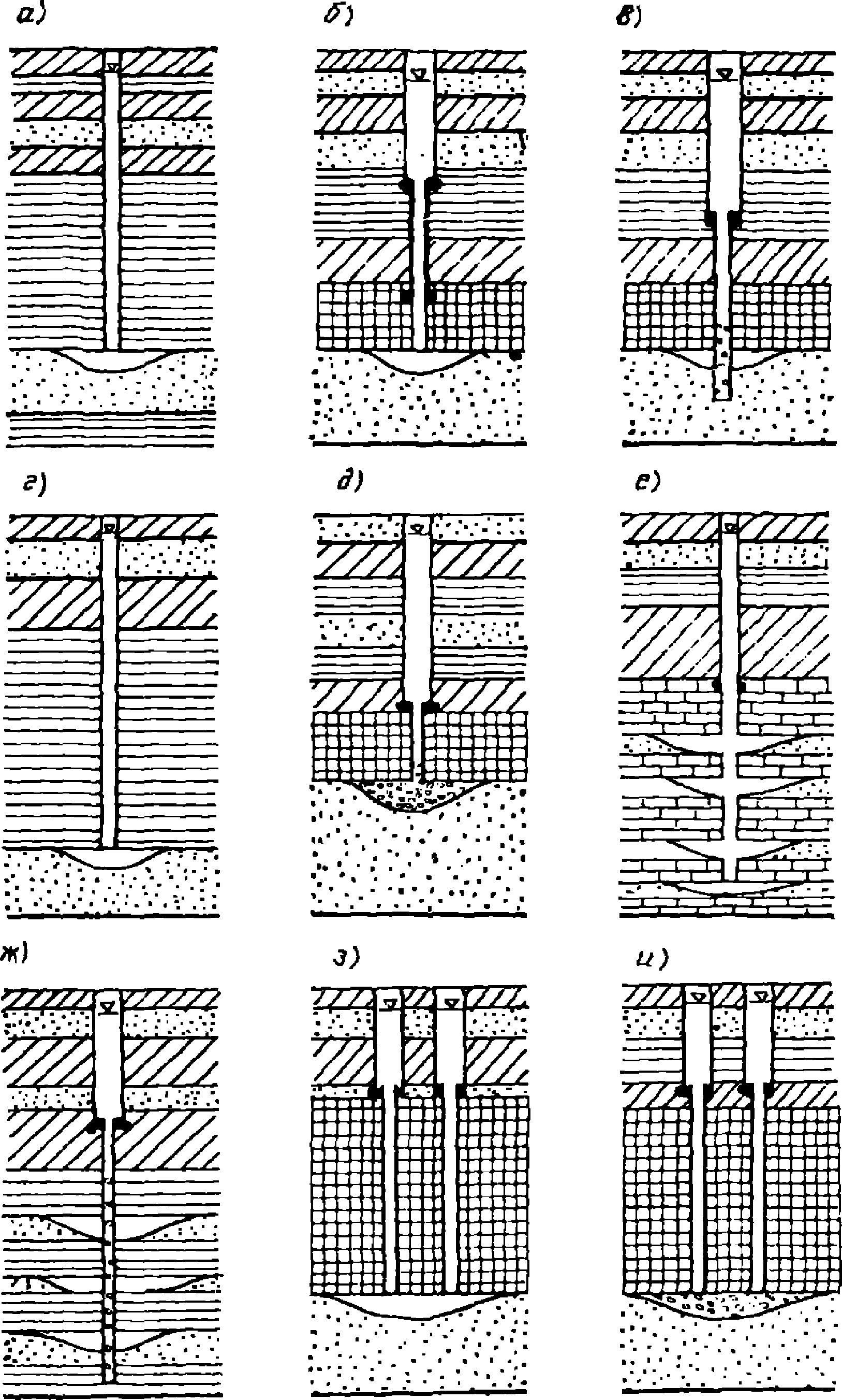 2.2. Бесфильтровые скважины в песках сооружаются в областях распространения осадочных пород с пологим залеганием, образующих слоистые толщи с чередованием рыхлых водоносных и плотных слоев различного литологического состава.