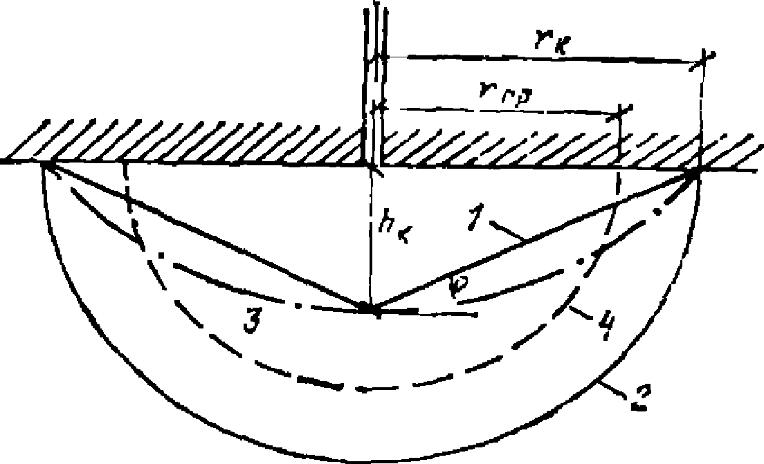(рис. 1). Глубина полости в центре обычно достигает 1,5 - 2 м, наибольший радиус - 10 - 15 м и более. Такая значительная фильтрующая площадь