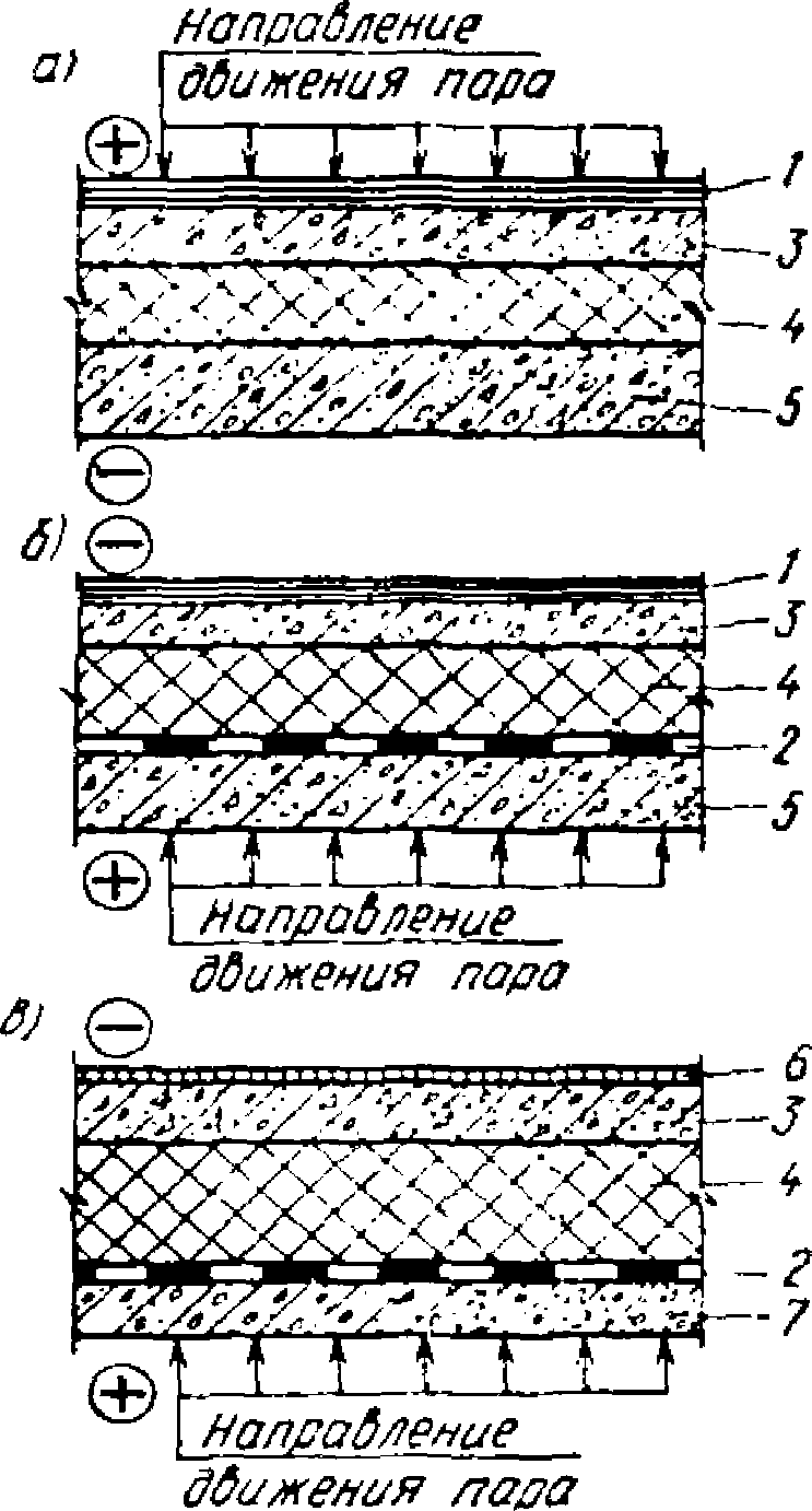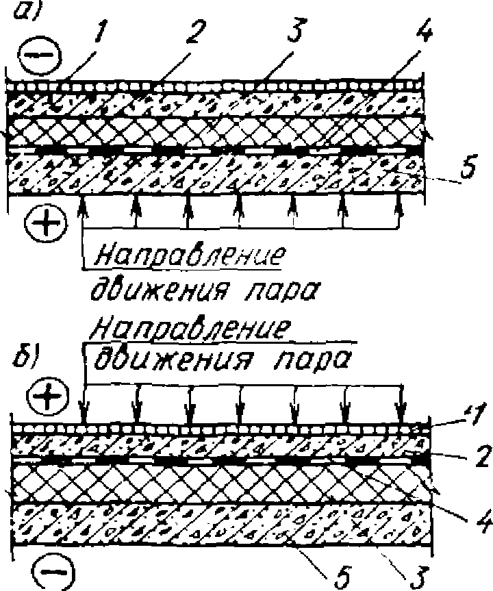 выполнением непрерывного эффективного гидропароизоляционного слоя со стороны большего суммарного давления водяных паров;