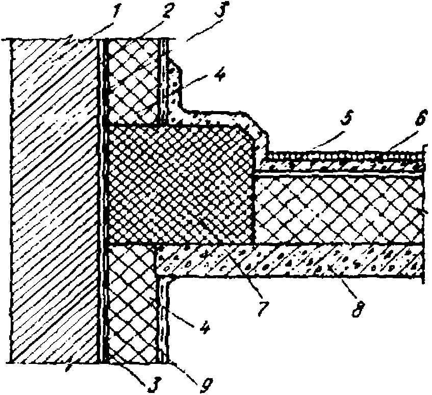 8 - междуэтажное перекрытие; 9 - отделочный слой
