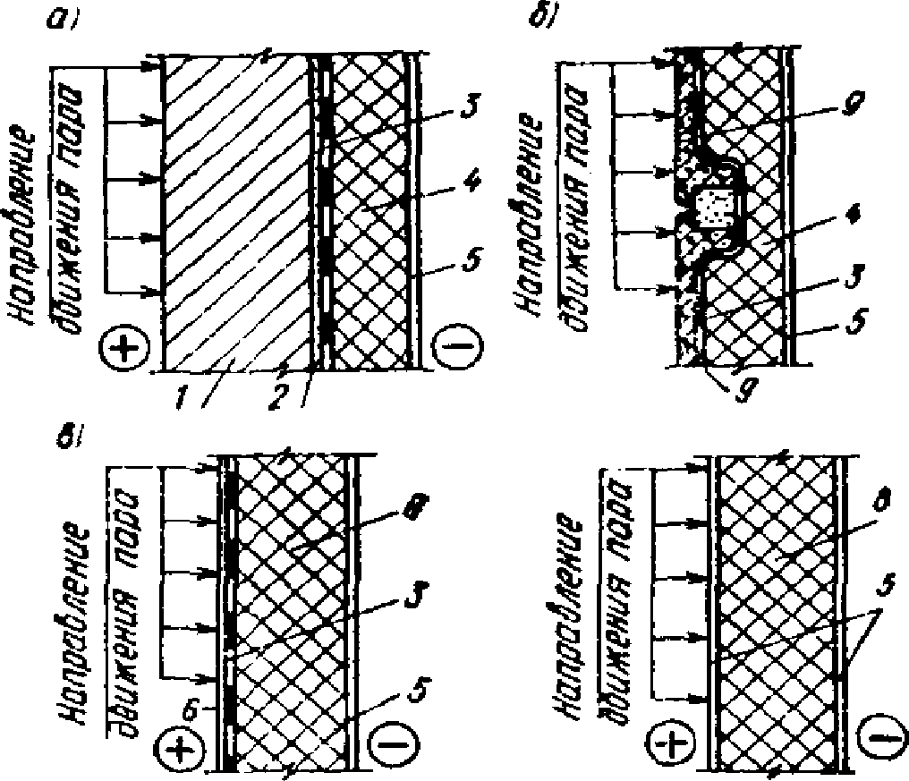 3.15. Схемы теплопароизоляции различных ограждающих конструкций приведены на