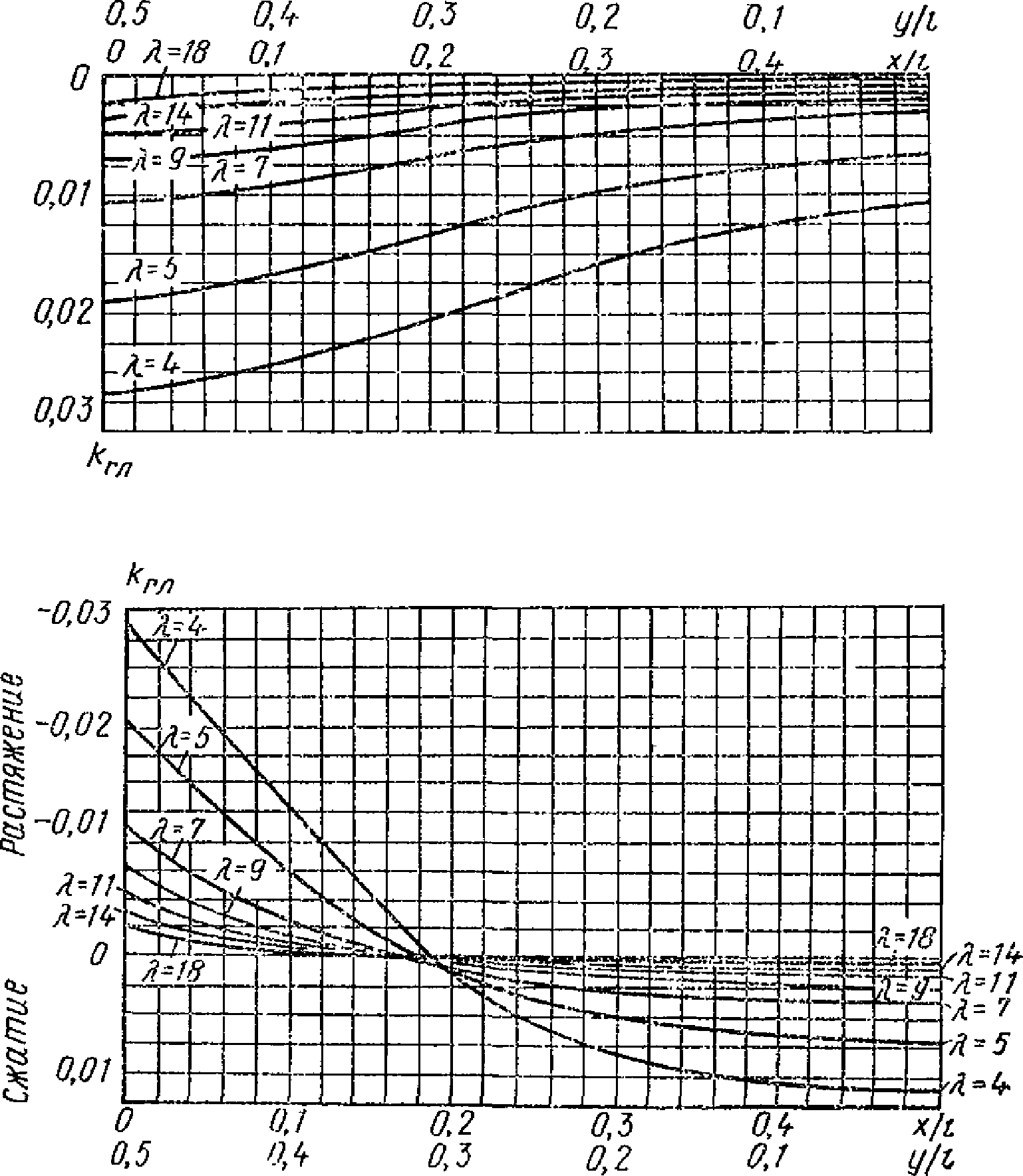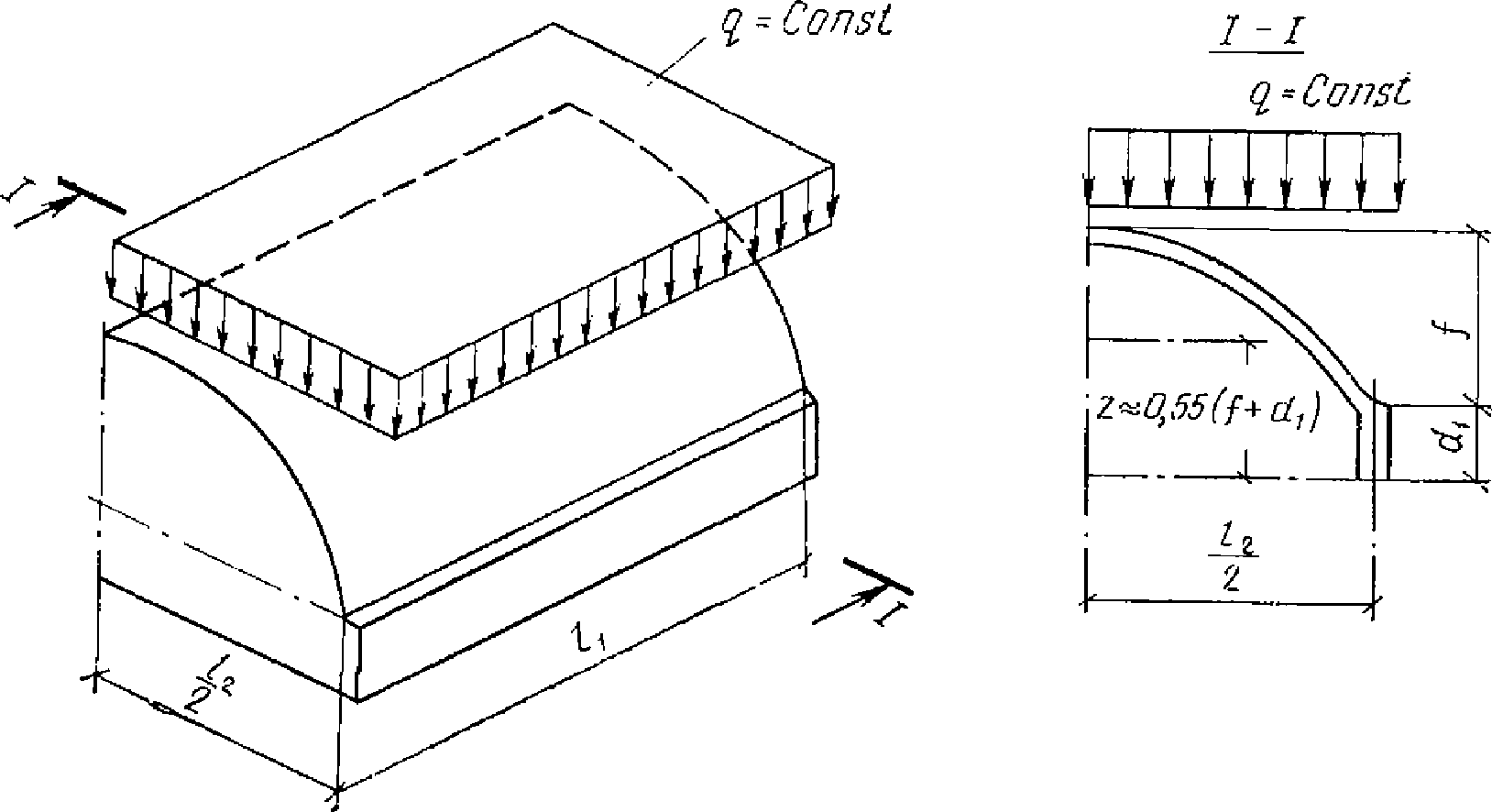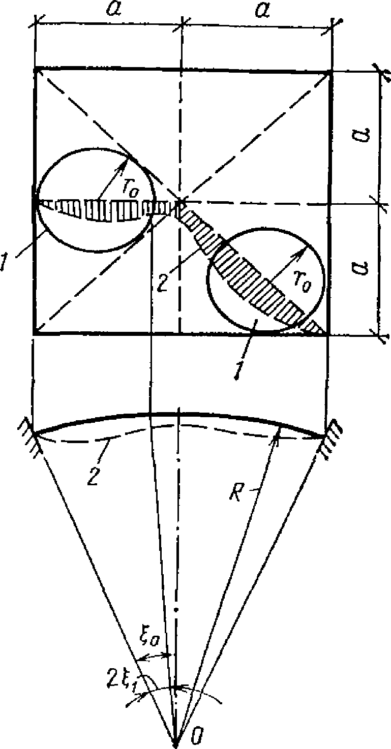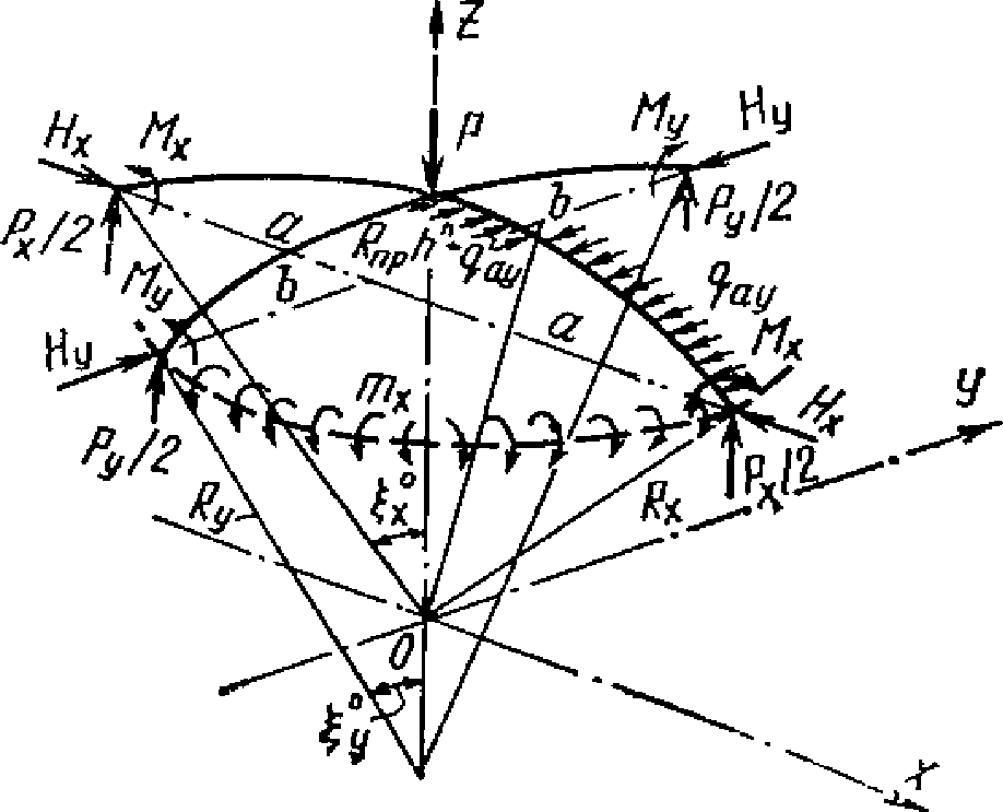 Rx, R1 - | радиус кривизны нормального сечения срединной поверхности плоскостью, параллельной оси x, или радиус кривизны меридионального сечения (для оболочек вращения); |