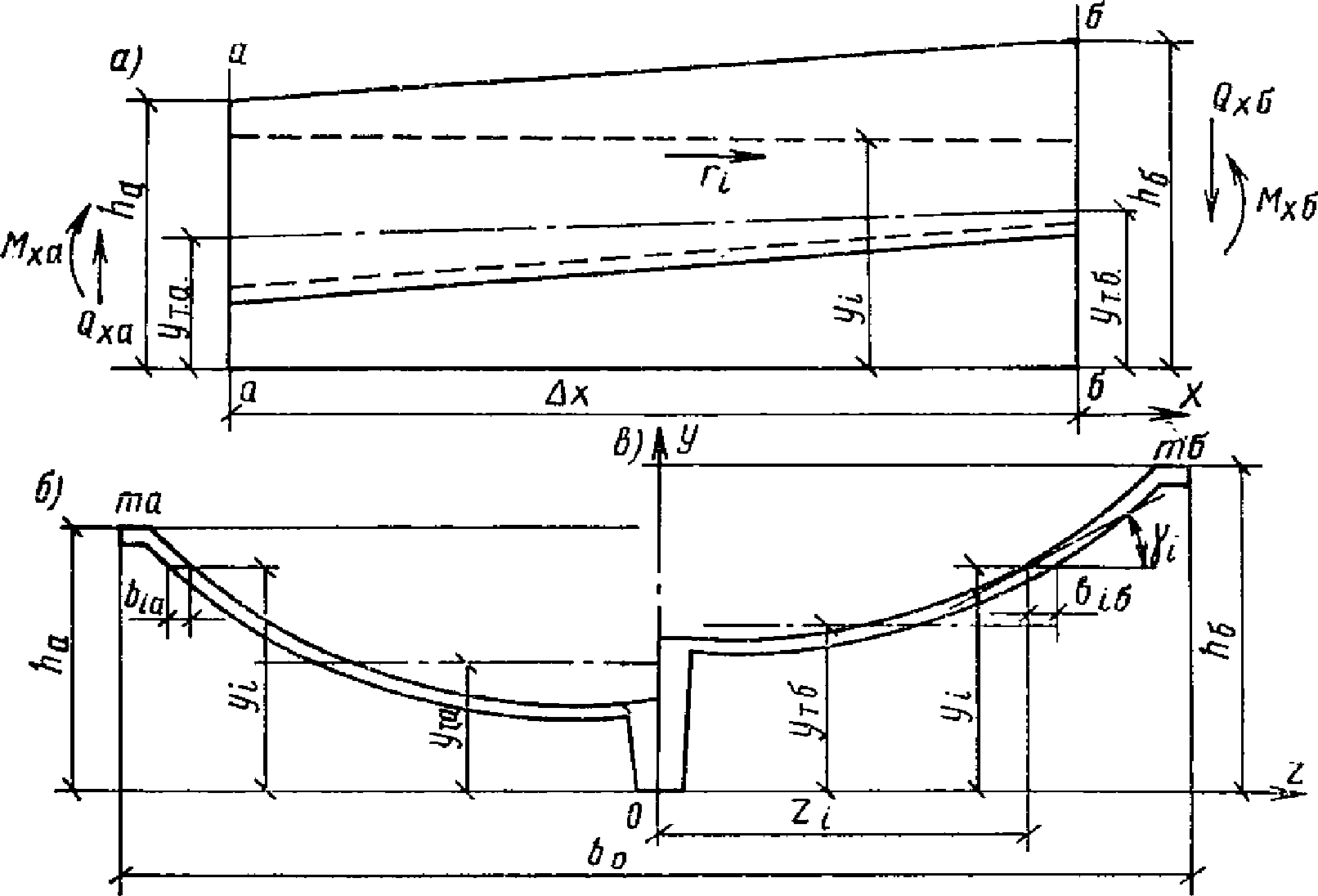 а). Определены характеристики поперечных сечений: