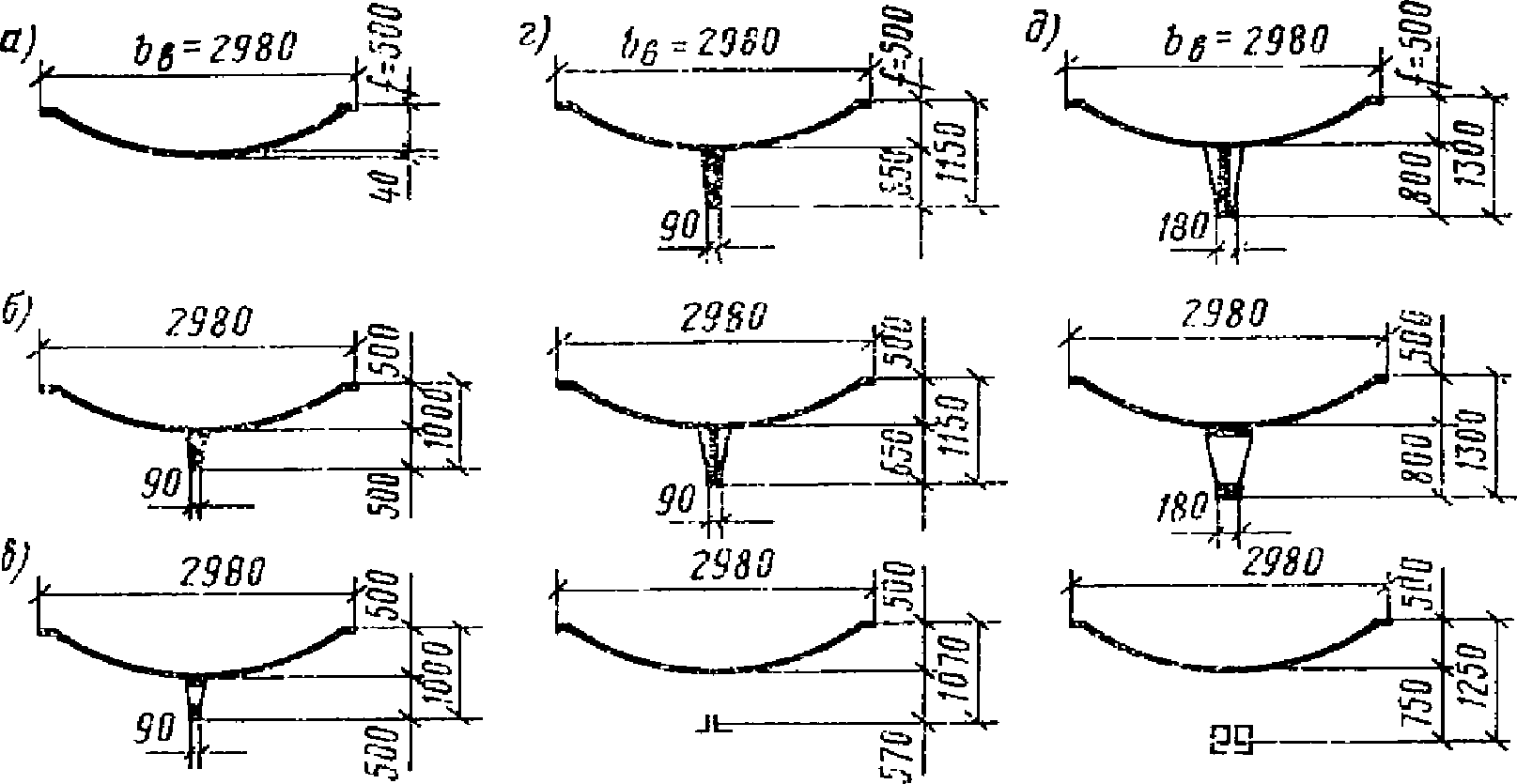 ж) составные оболочки, имеющие сложную поверхность, образуемые из оболочек, предусмотренных