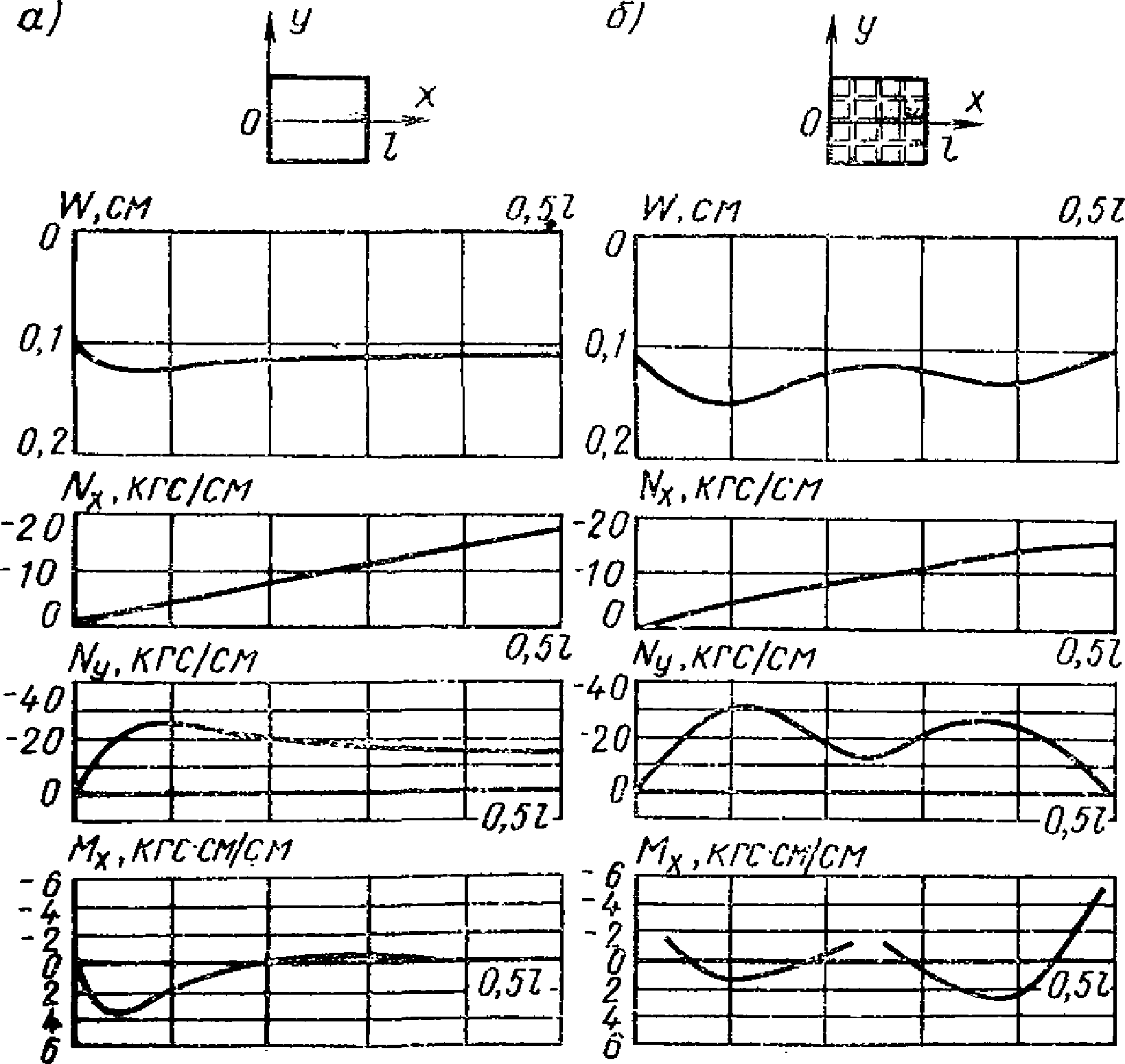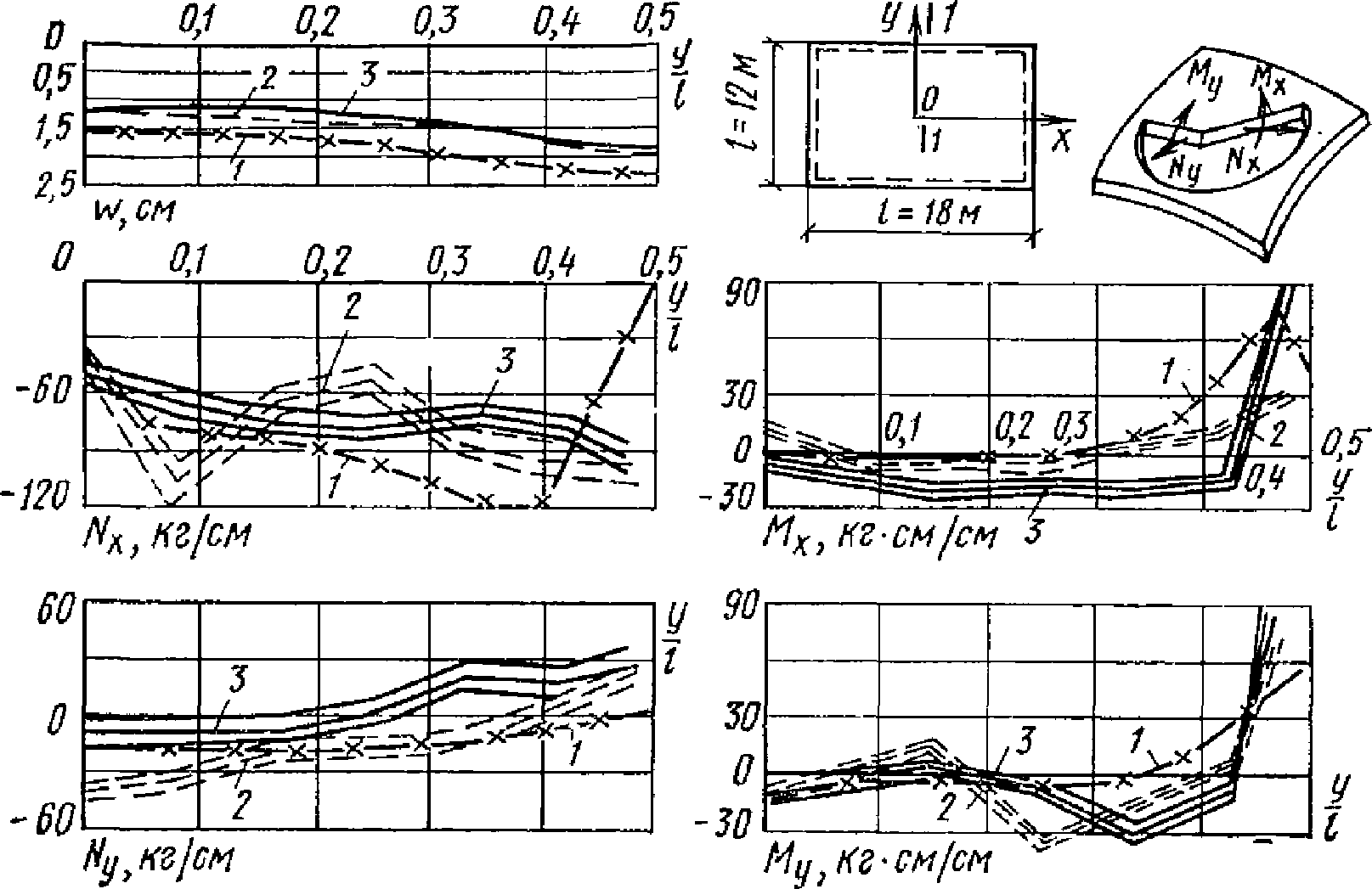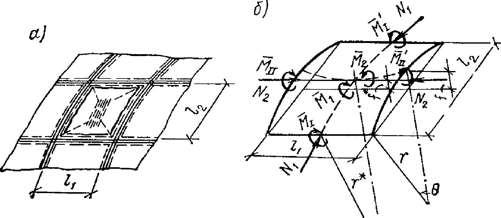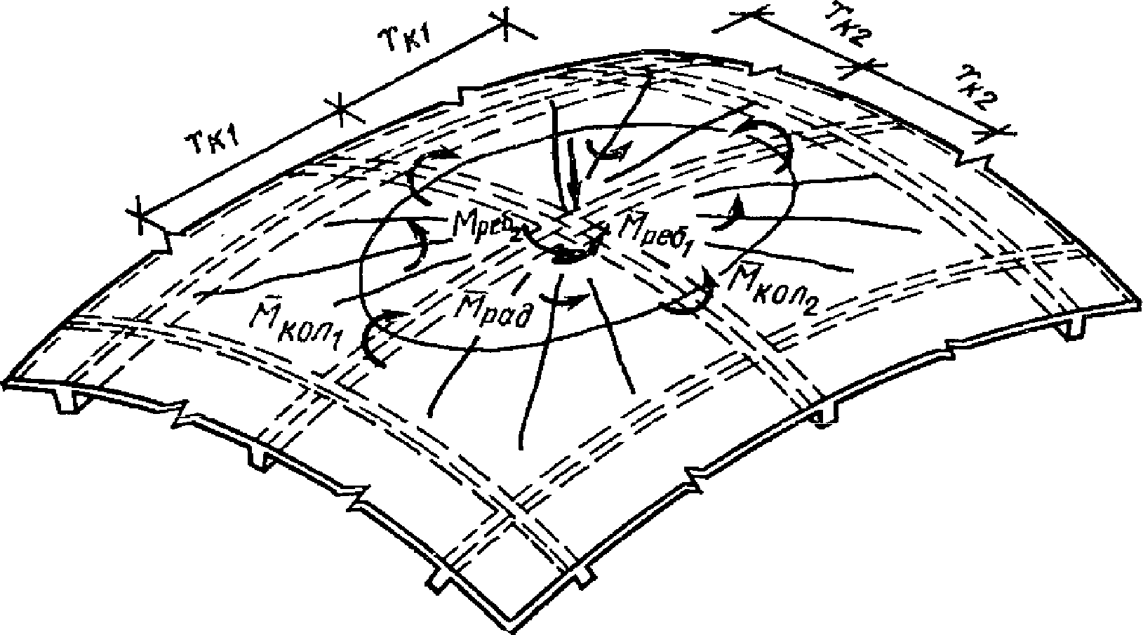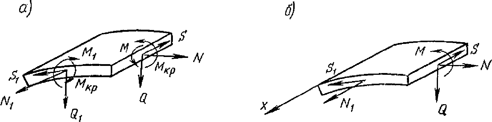 Mx, M1 - | изгибающие моменты с плоскостью действия, параллельной оси x, или меридиональные моменты (для оболочек вращения); |